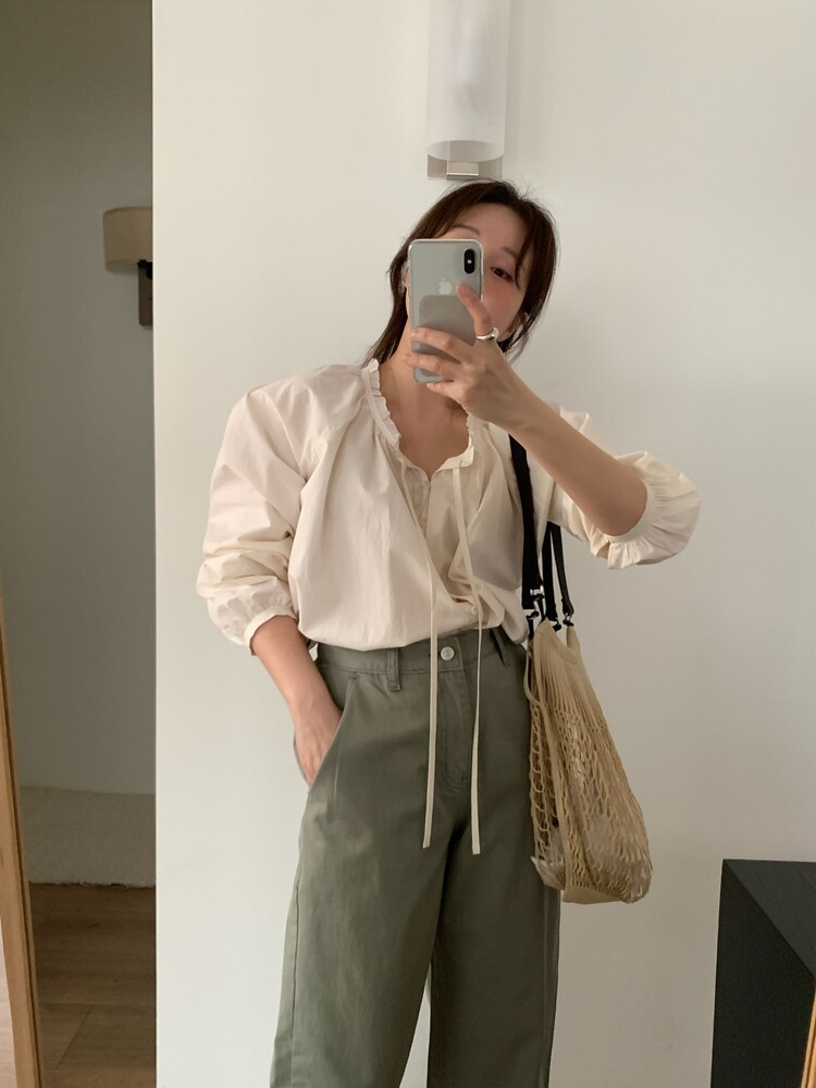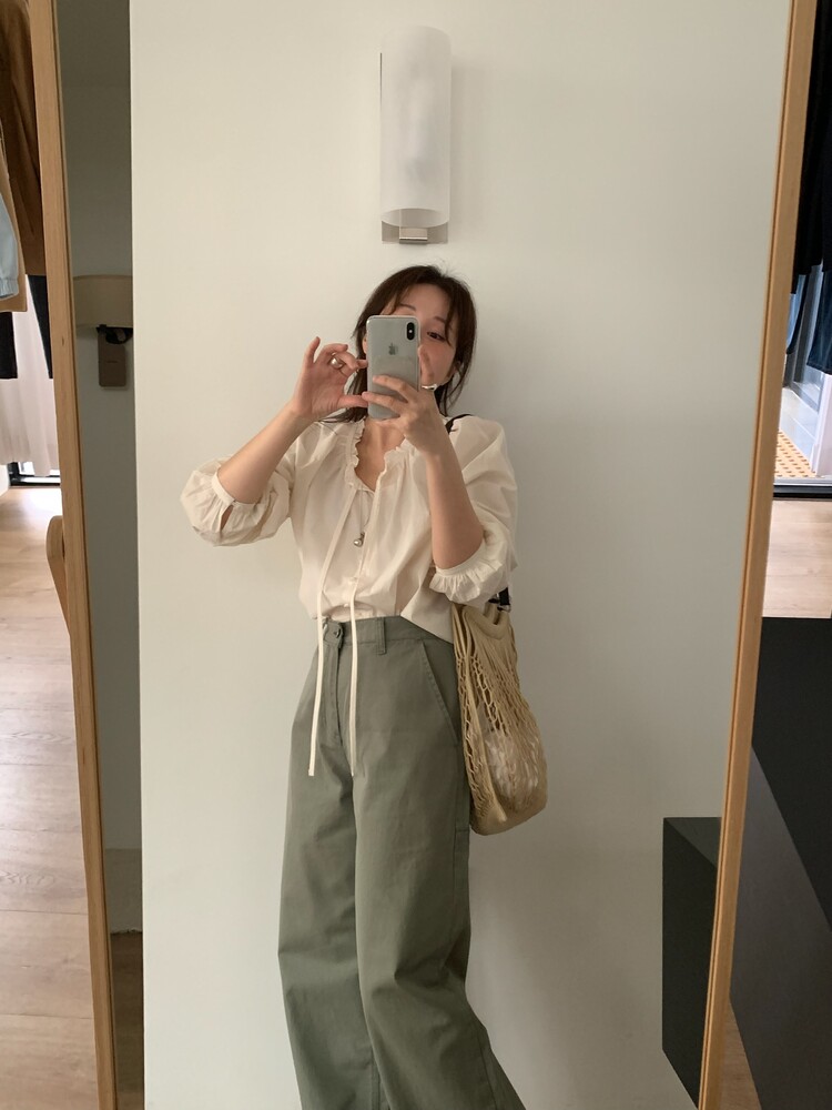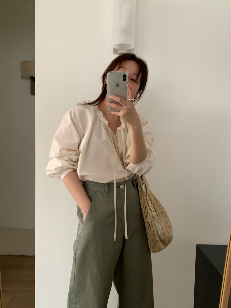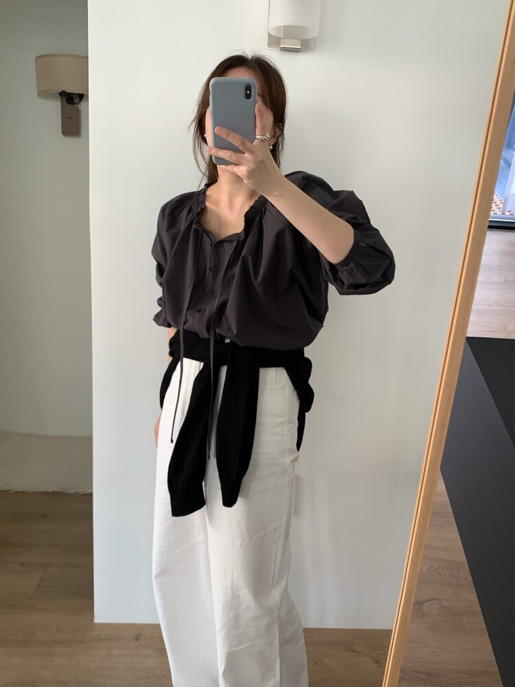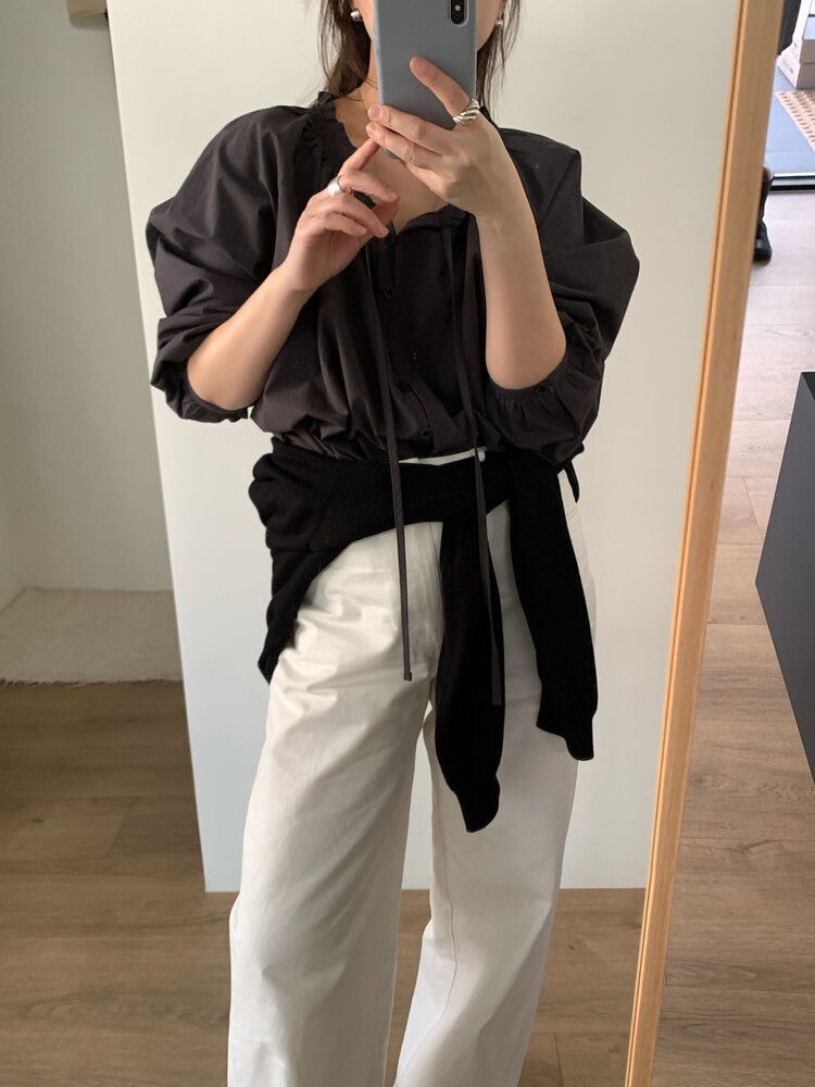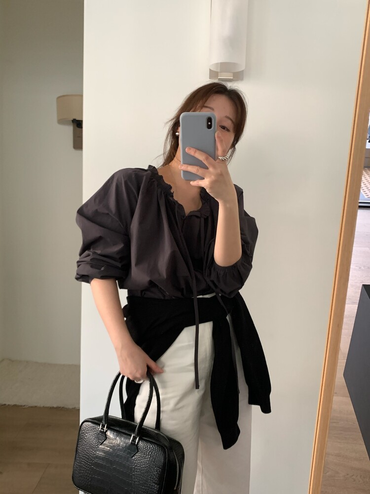 자연스럽게 흐르는 여유있는 실루엣이 우아한 무드를 더해주는 매력적인 블라우스입니다