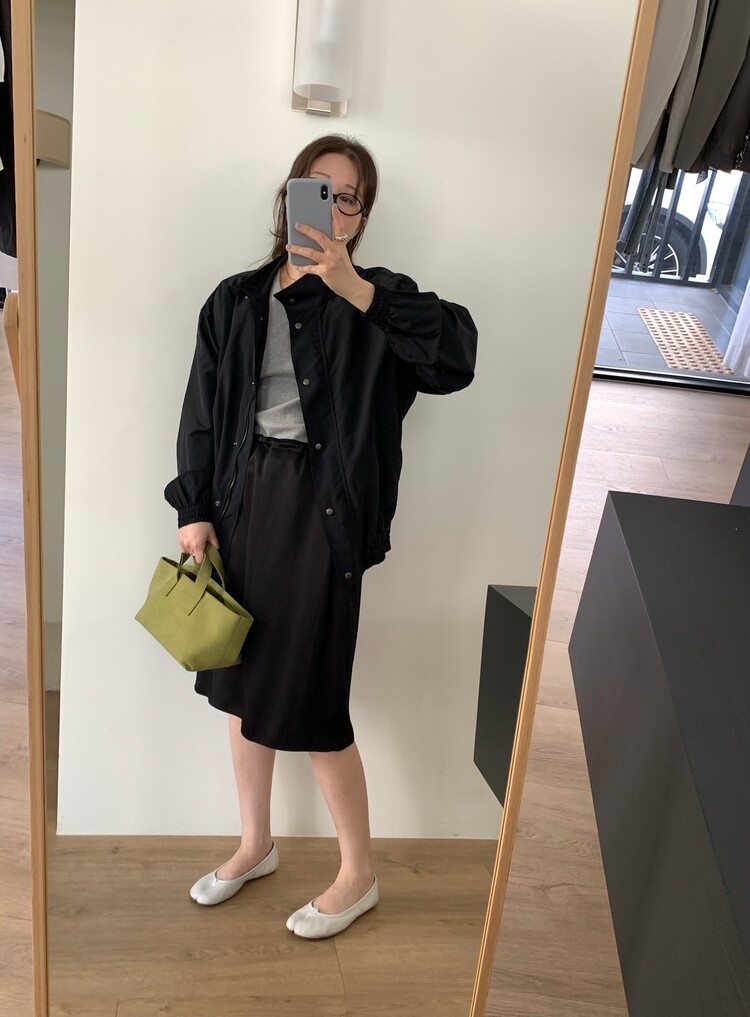 전체적으로 여유로운 핏과 소매단과 밑단 밴딩으로 핏을 잘 잡아주며