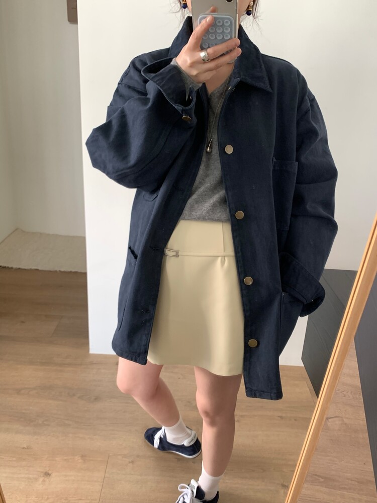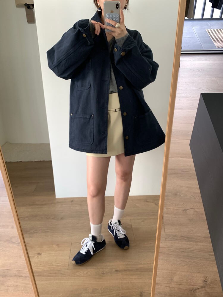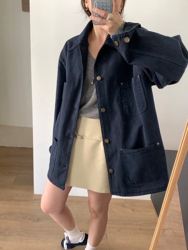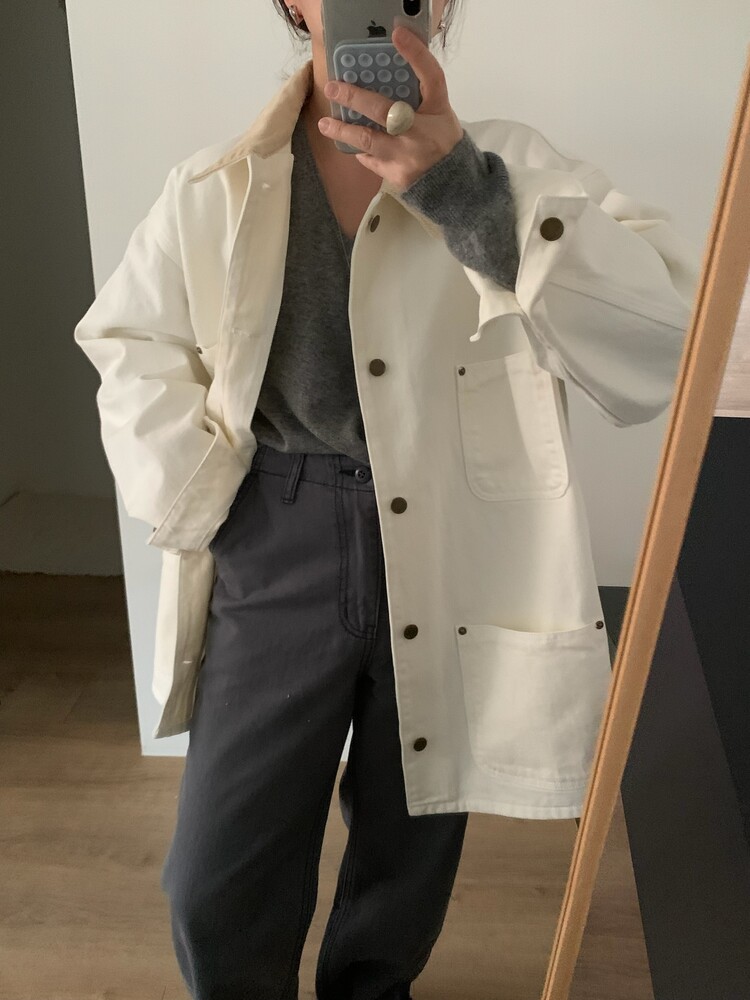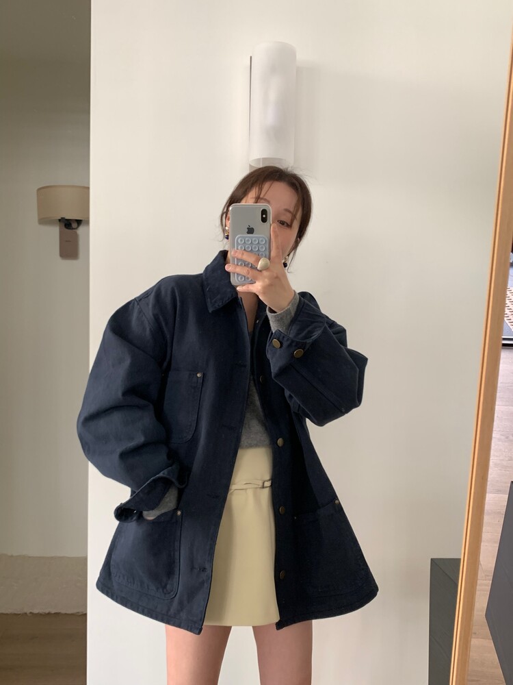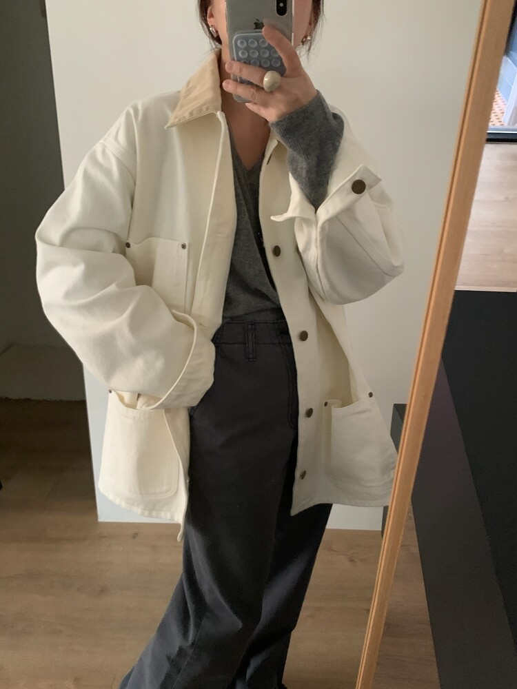 여유있는 핏으로 착용되는 워크 자켓 입니다