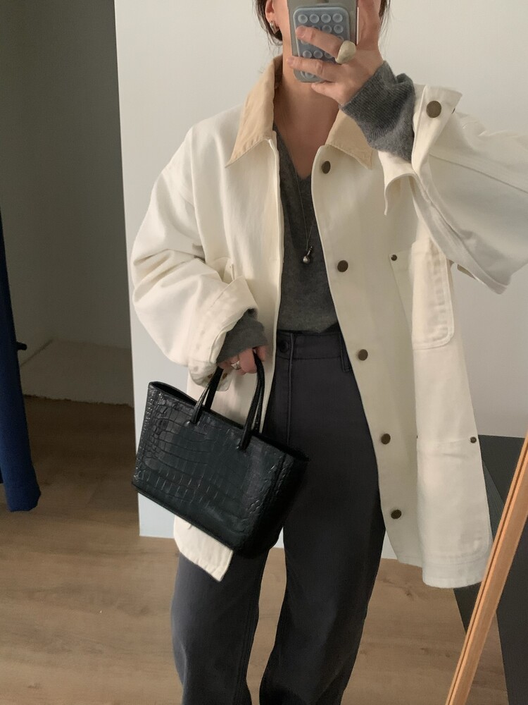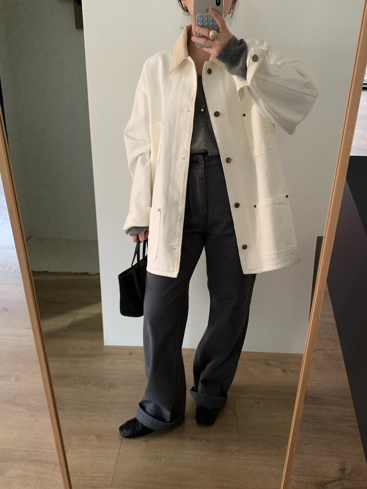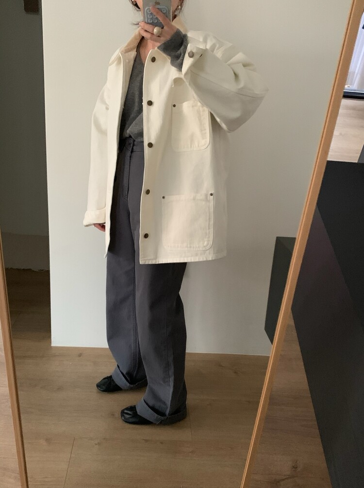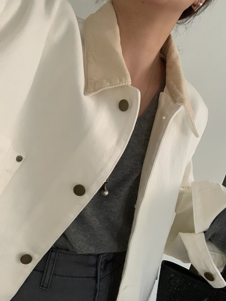 카라 배색부분이 코듀로이 원단으로 포인트를 주었습니다