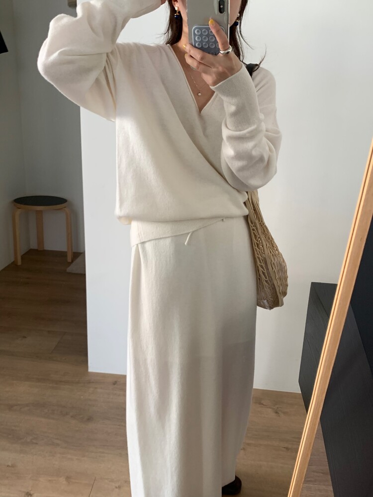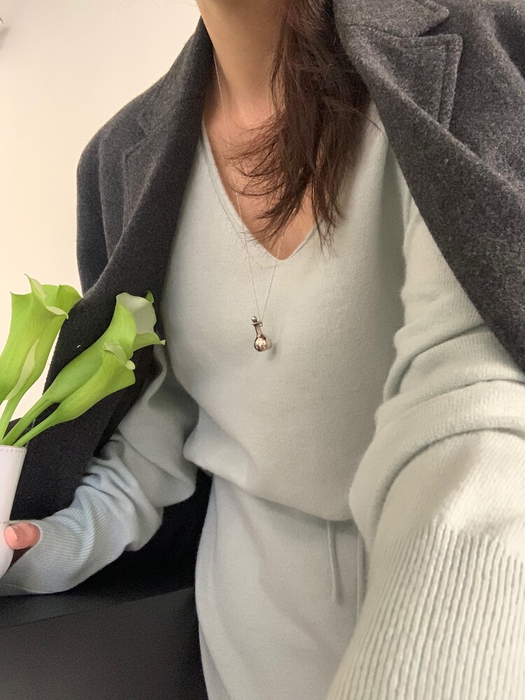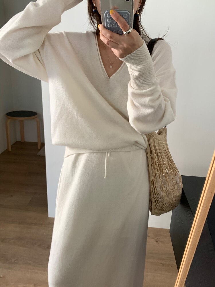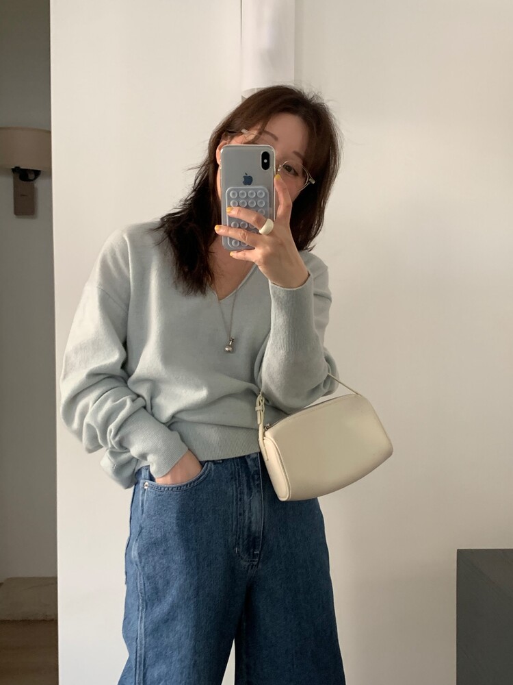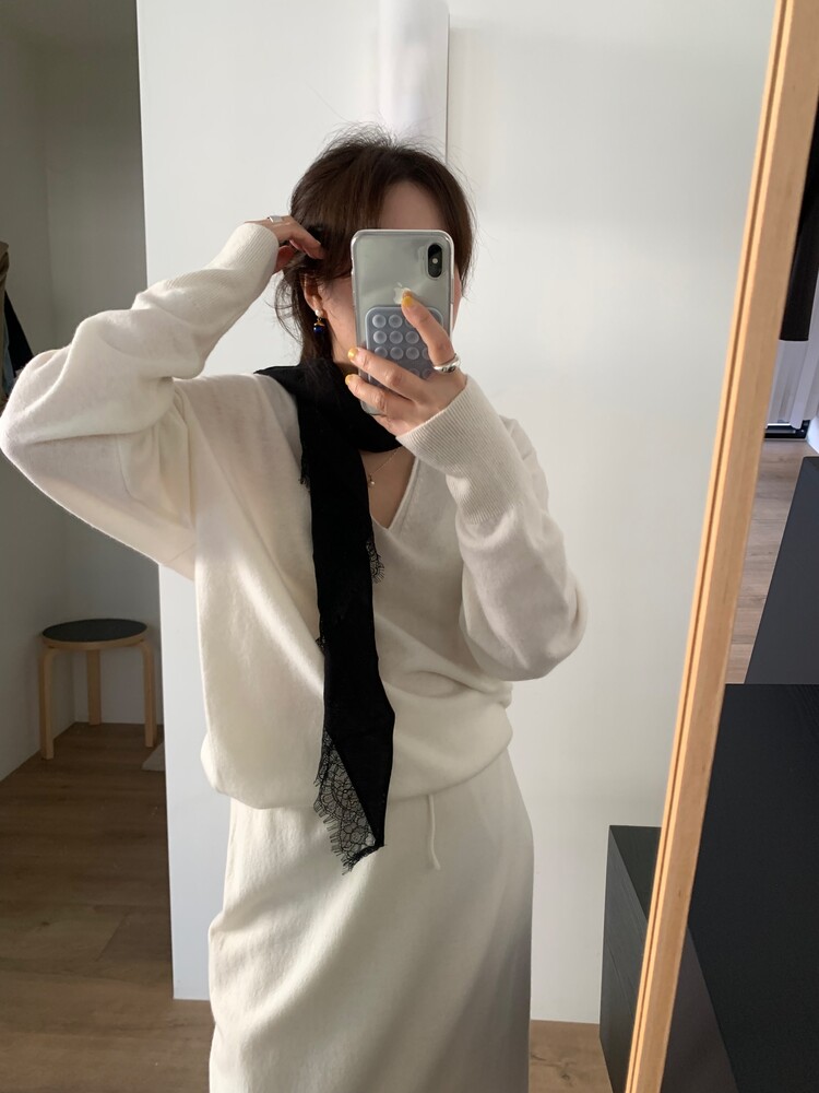 딥한 브이넥이 여성스러움을 돋보이게 해주는