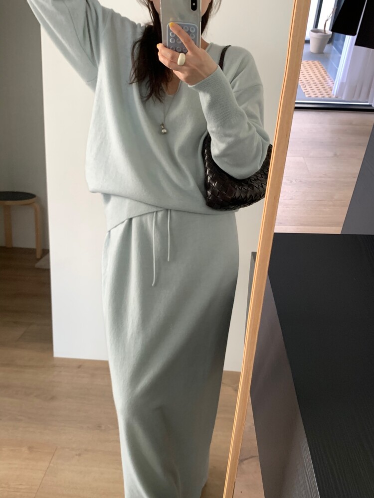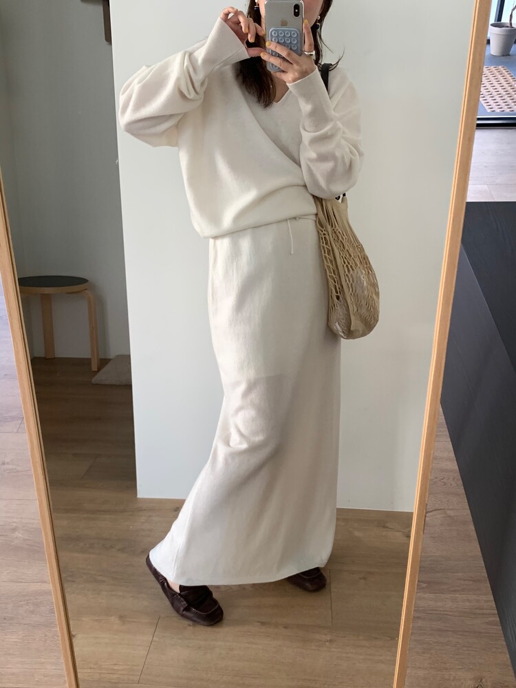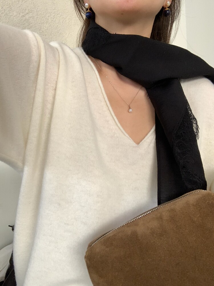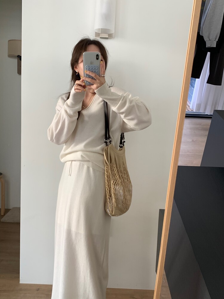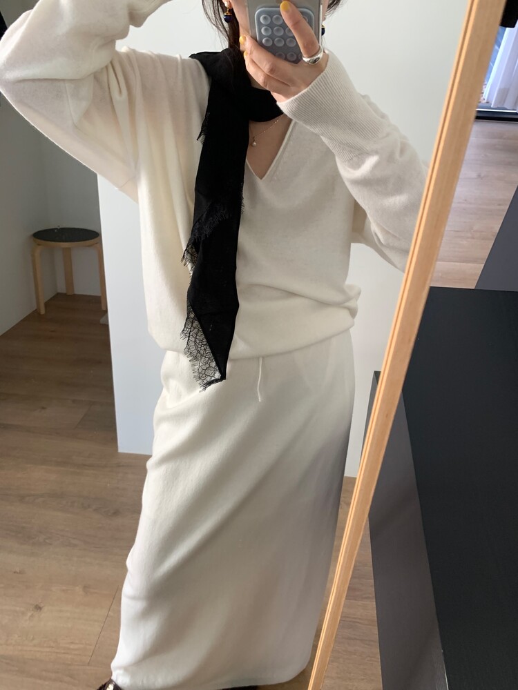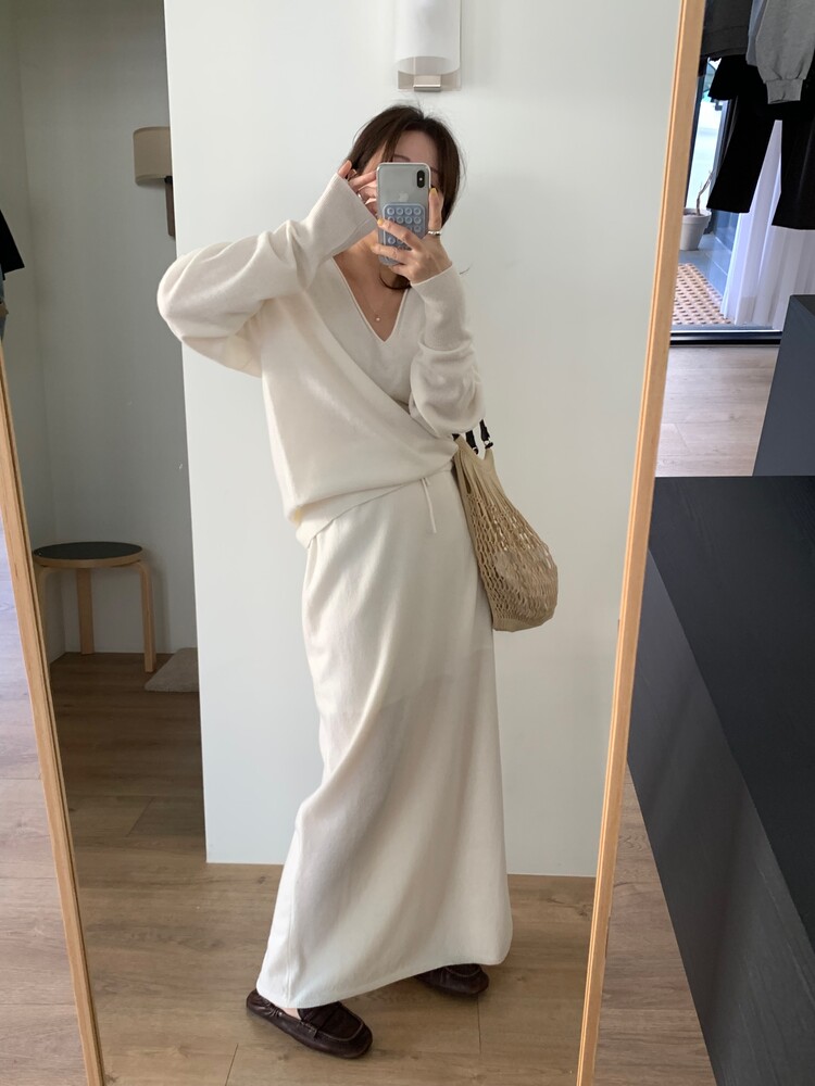 딥한 브이넥이 여성스러움을 돋보이게 해주는