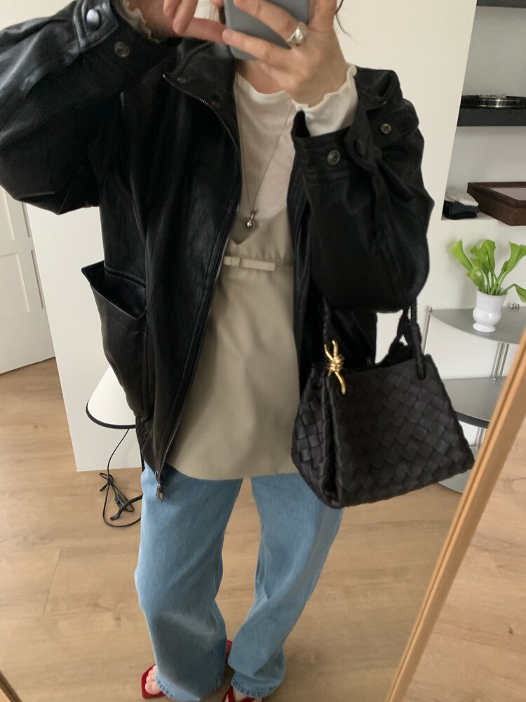 짧은 점퍼나 자켓등 같이 연출해주기 좋은 아이템입니다