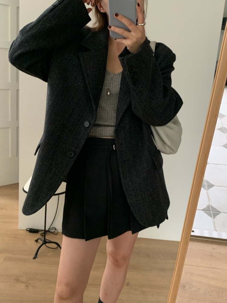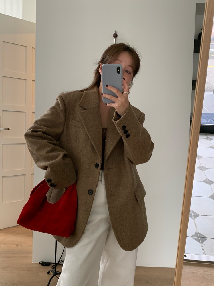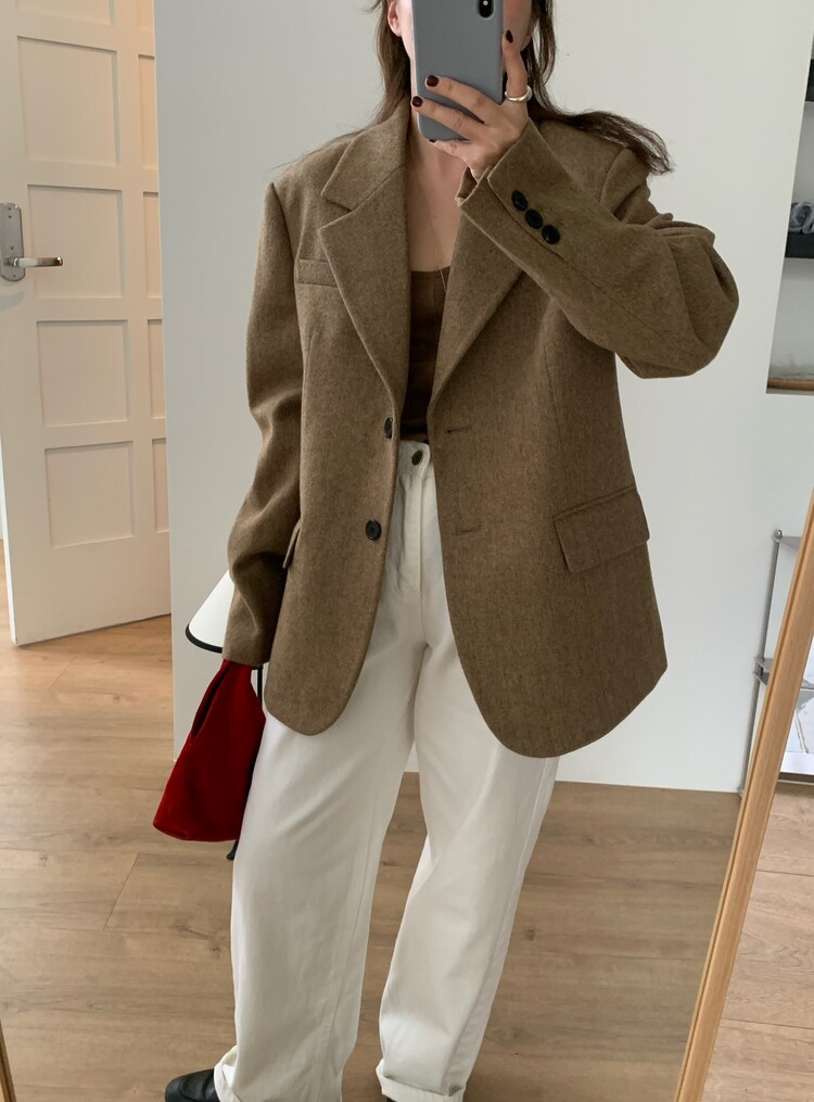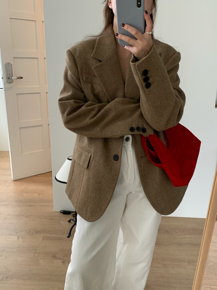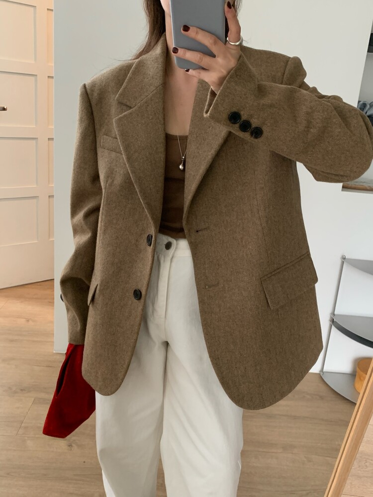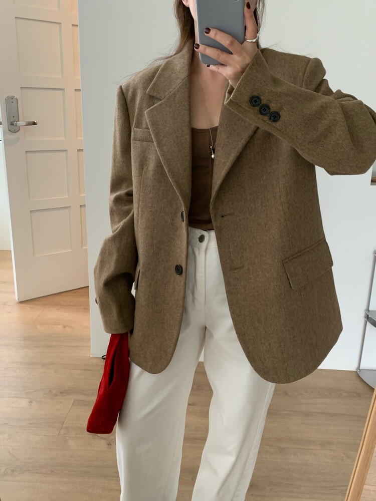 도톰한 두께감의 투버튼 울100 자켓입니다