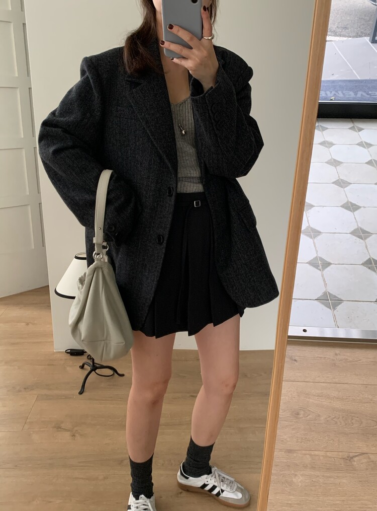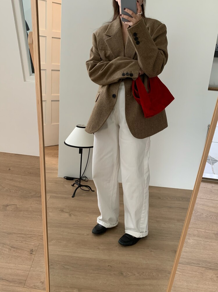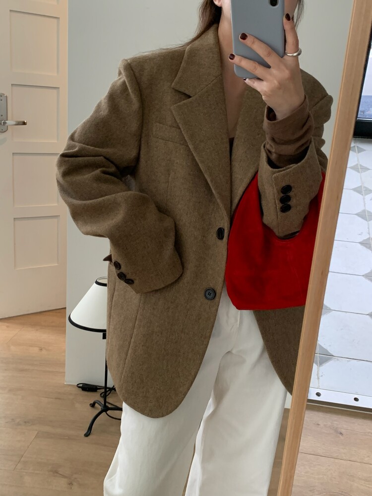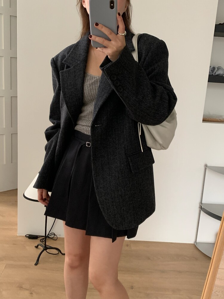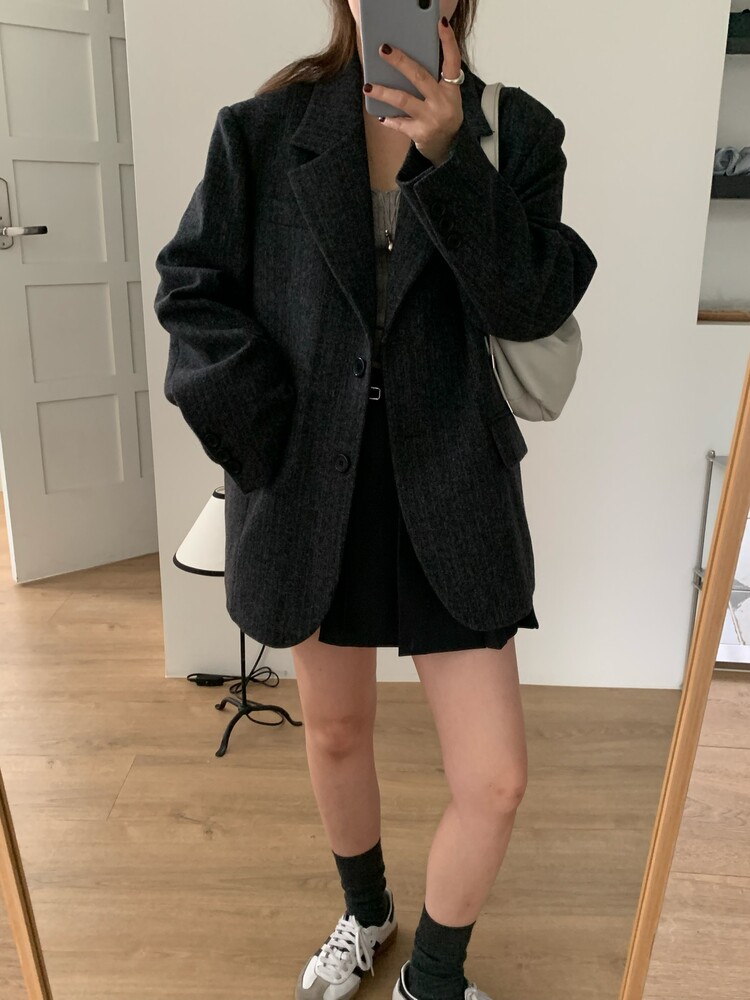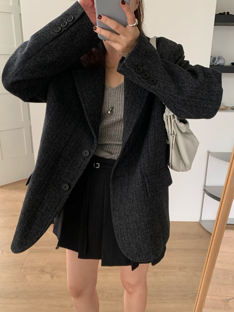 도톰한 두께감의 투버튼 울100 자켓입니다