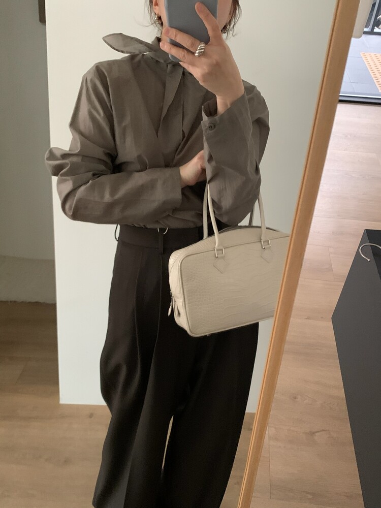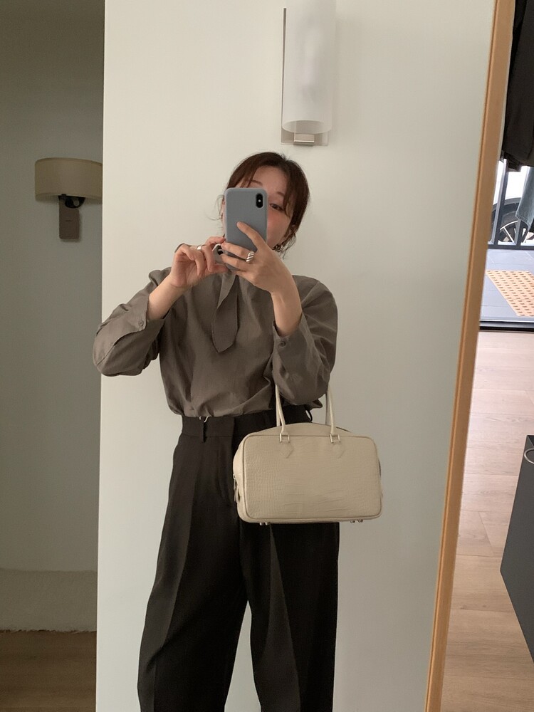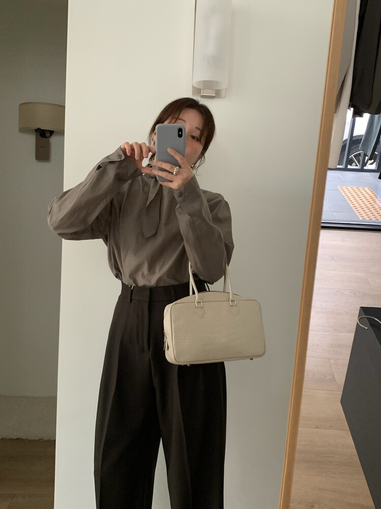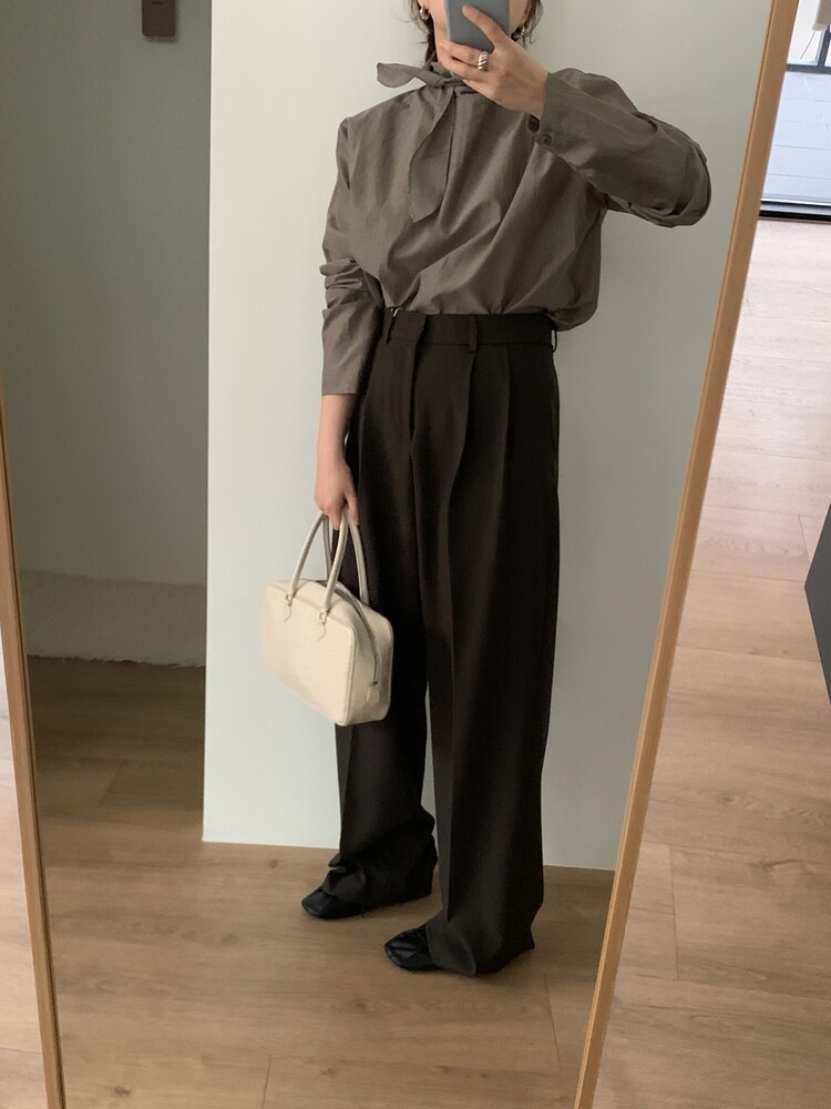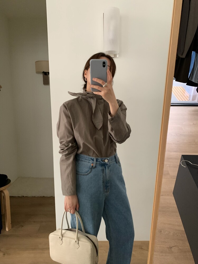 은은한 비침과 넥라인 타이 디자인으로 여성스러운 무드로