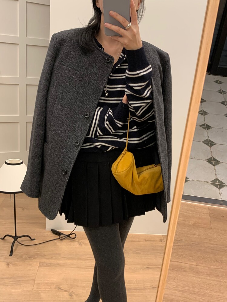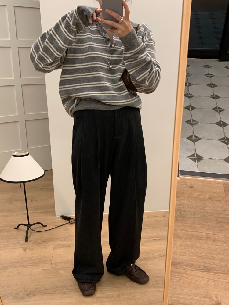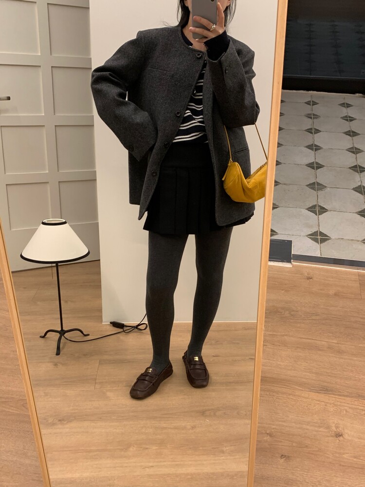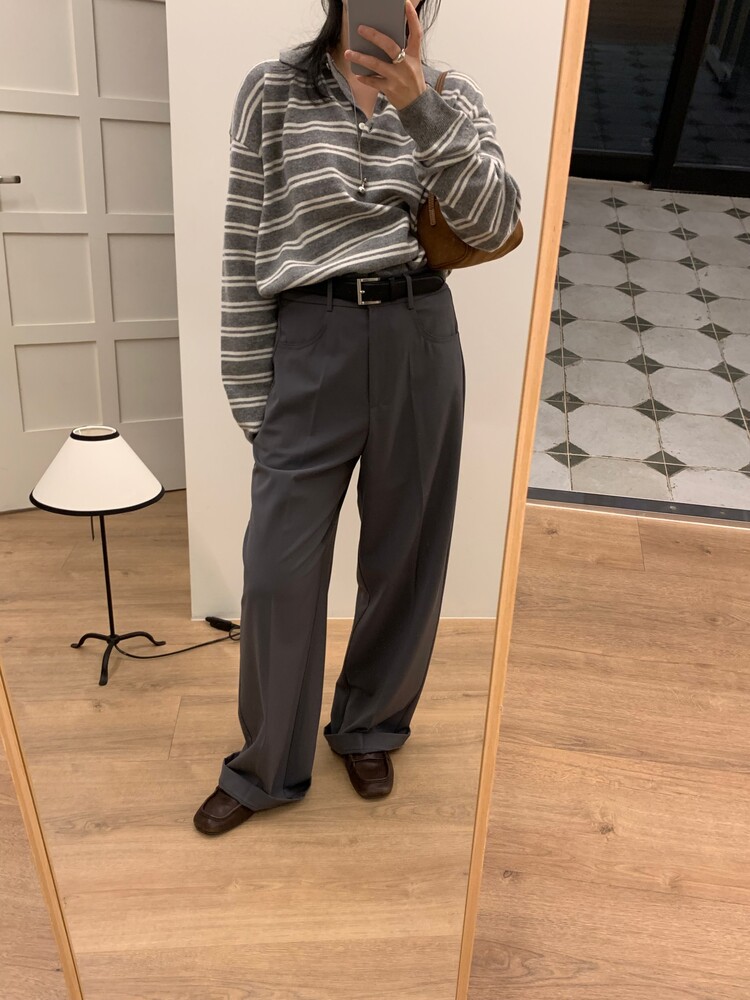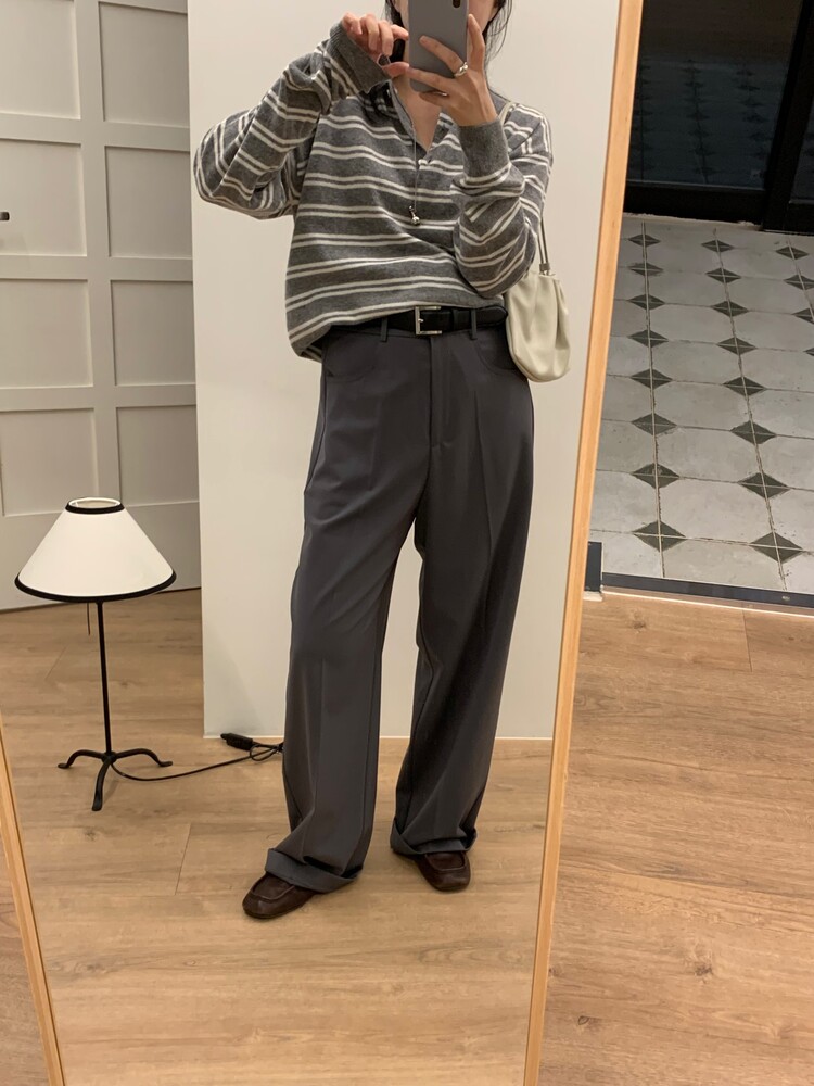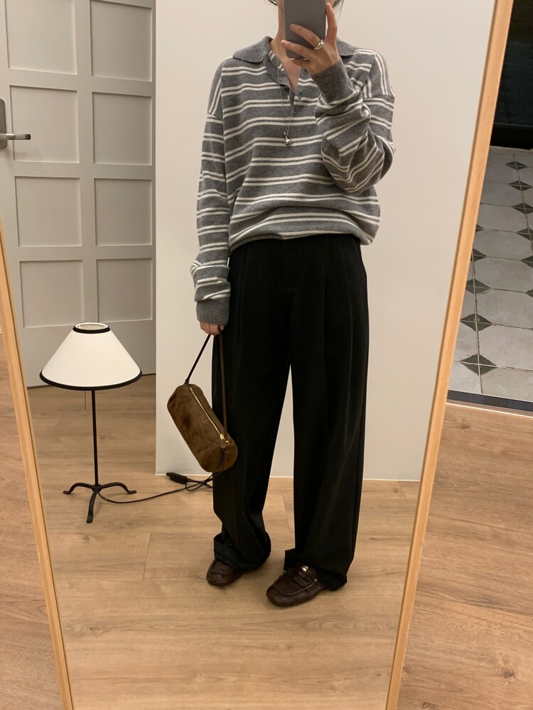 적당한 루즈핏으로 착용되며 프리미엄 울과 캐시미어 혼방소재로