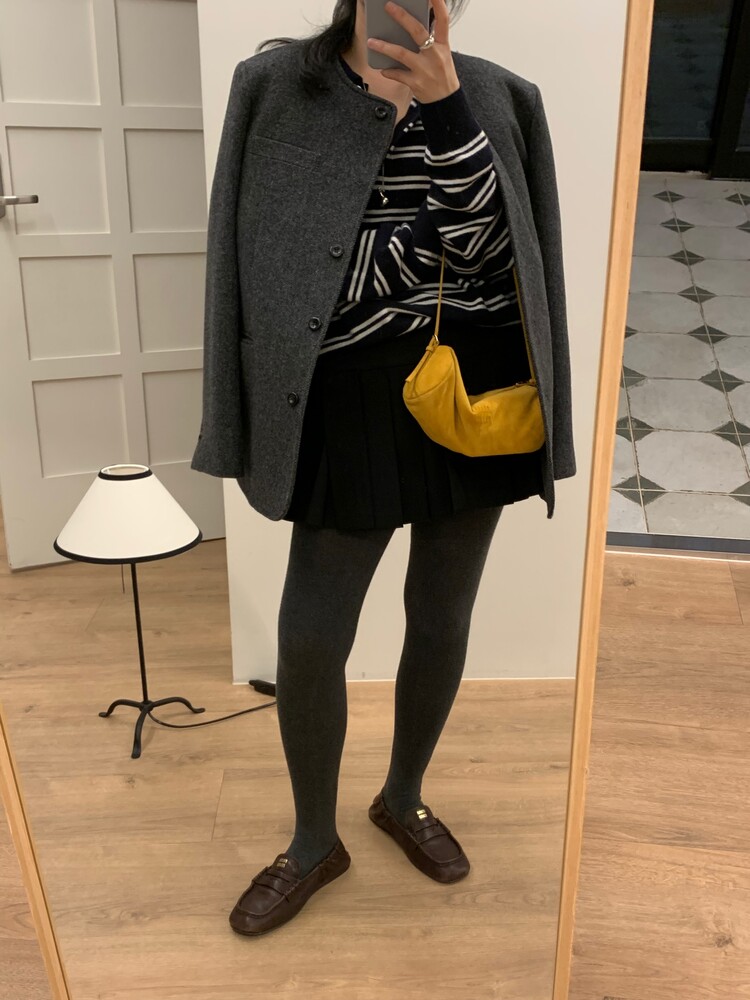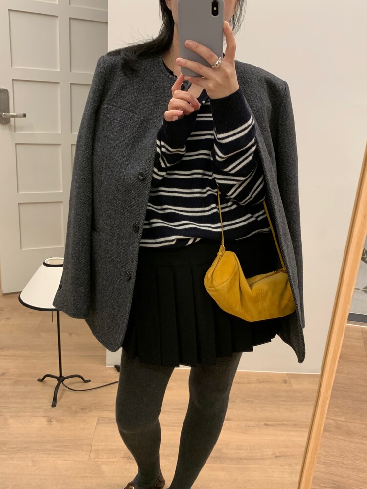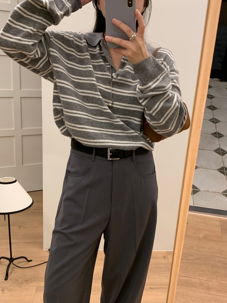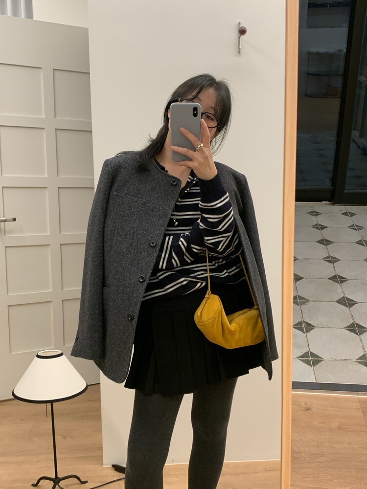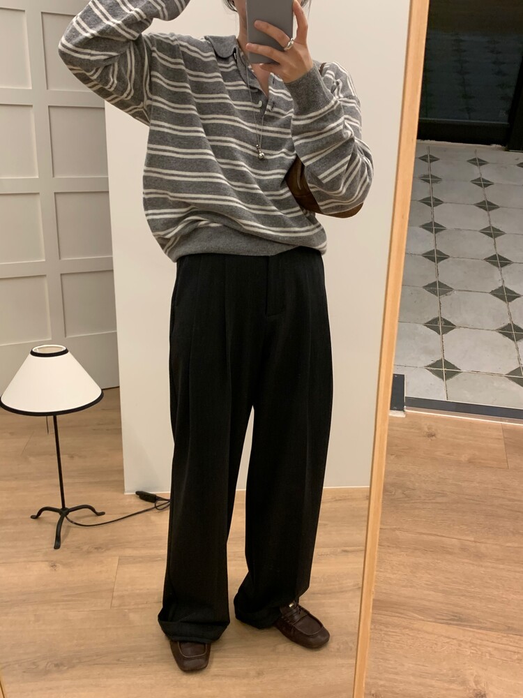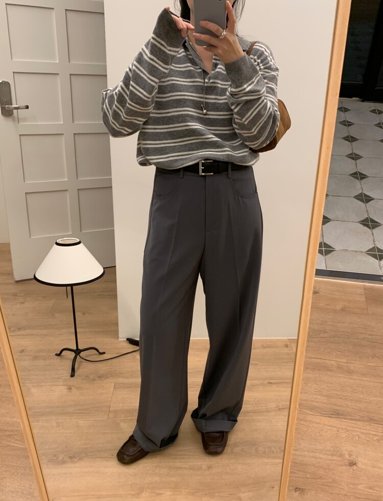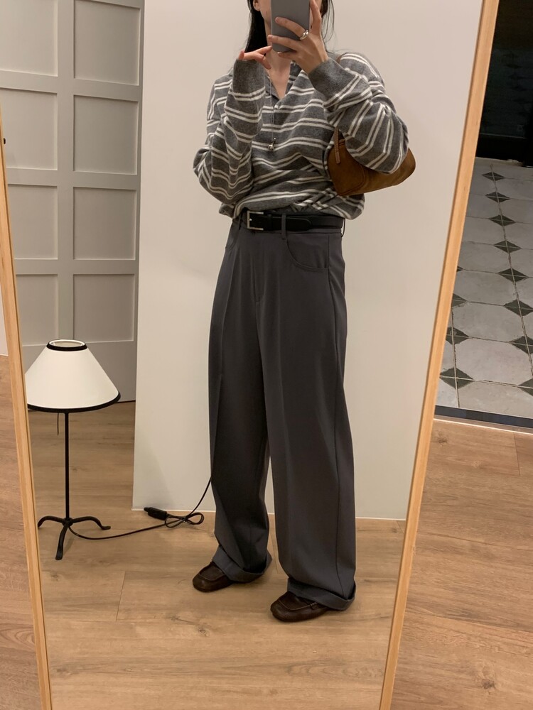 적당한 루즈핏으로 착용되며 프리미엄 울과 캐시미어 혼방소재로