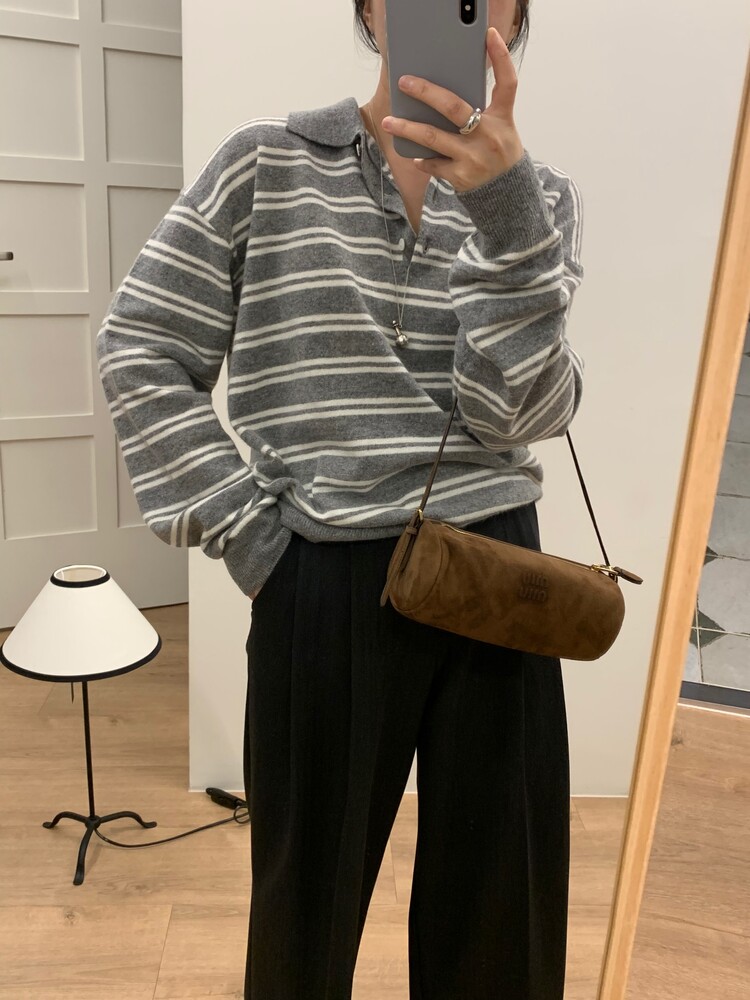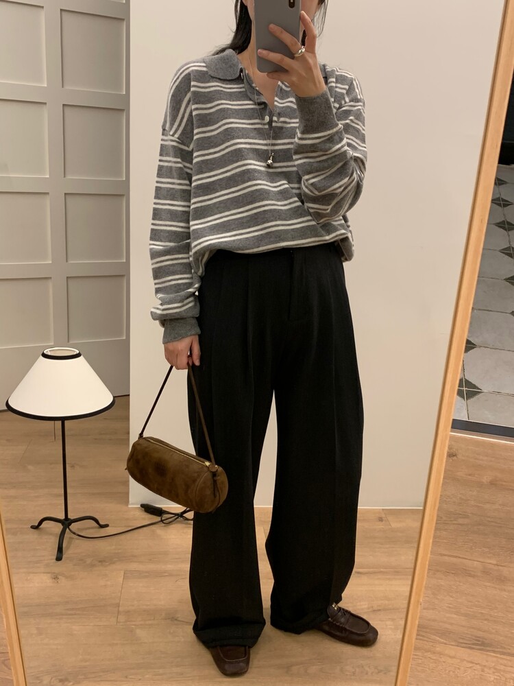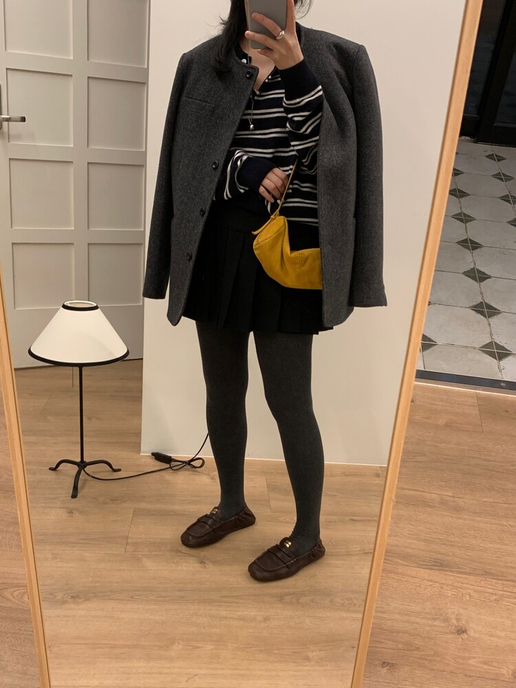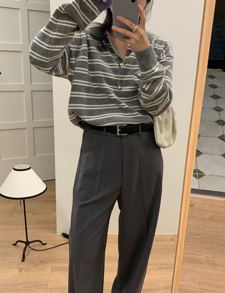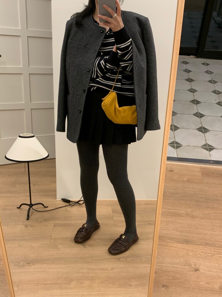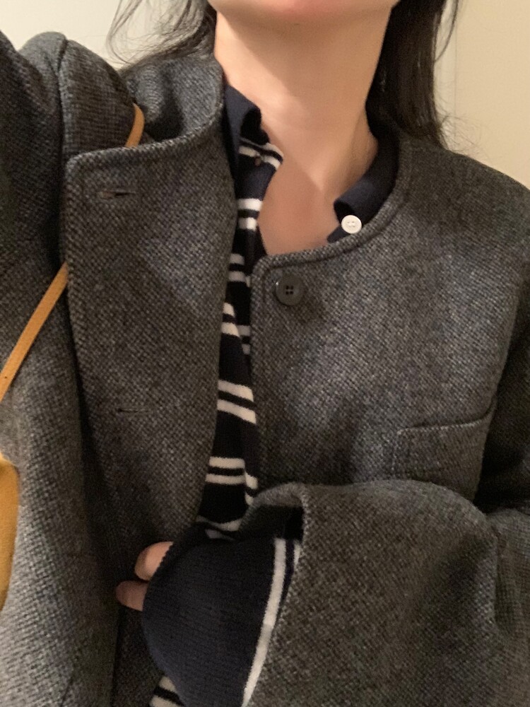 적당한 루즈핏으로 착용되며 프리미엄 울과 캐시미어 혼방소재로