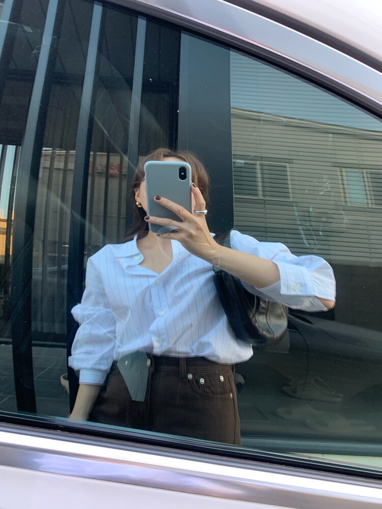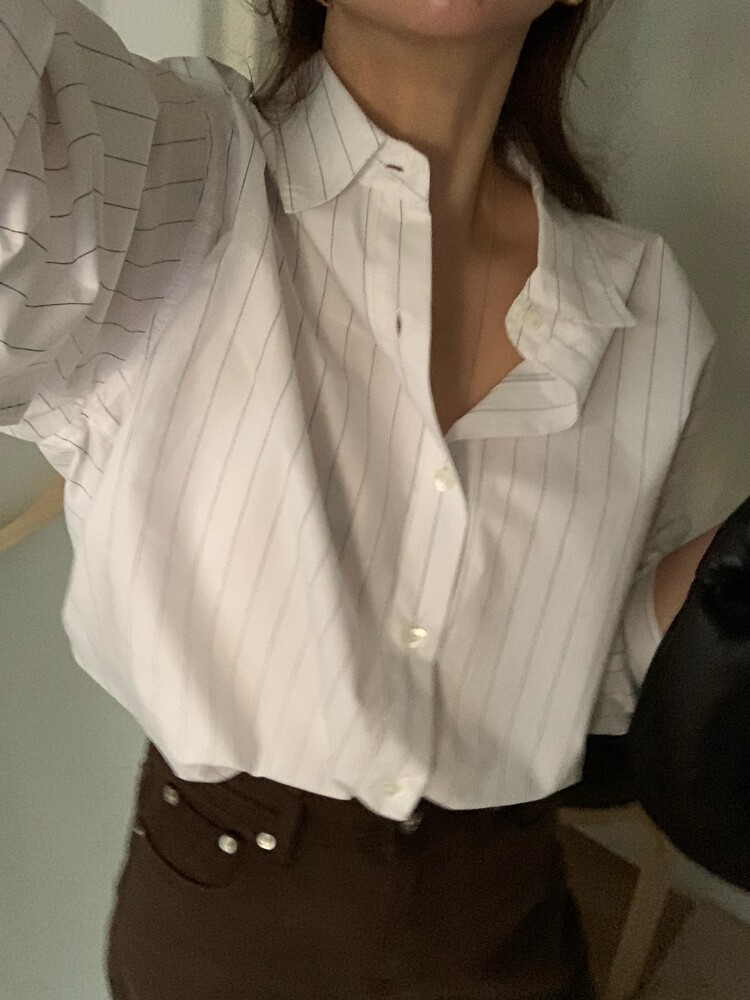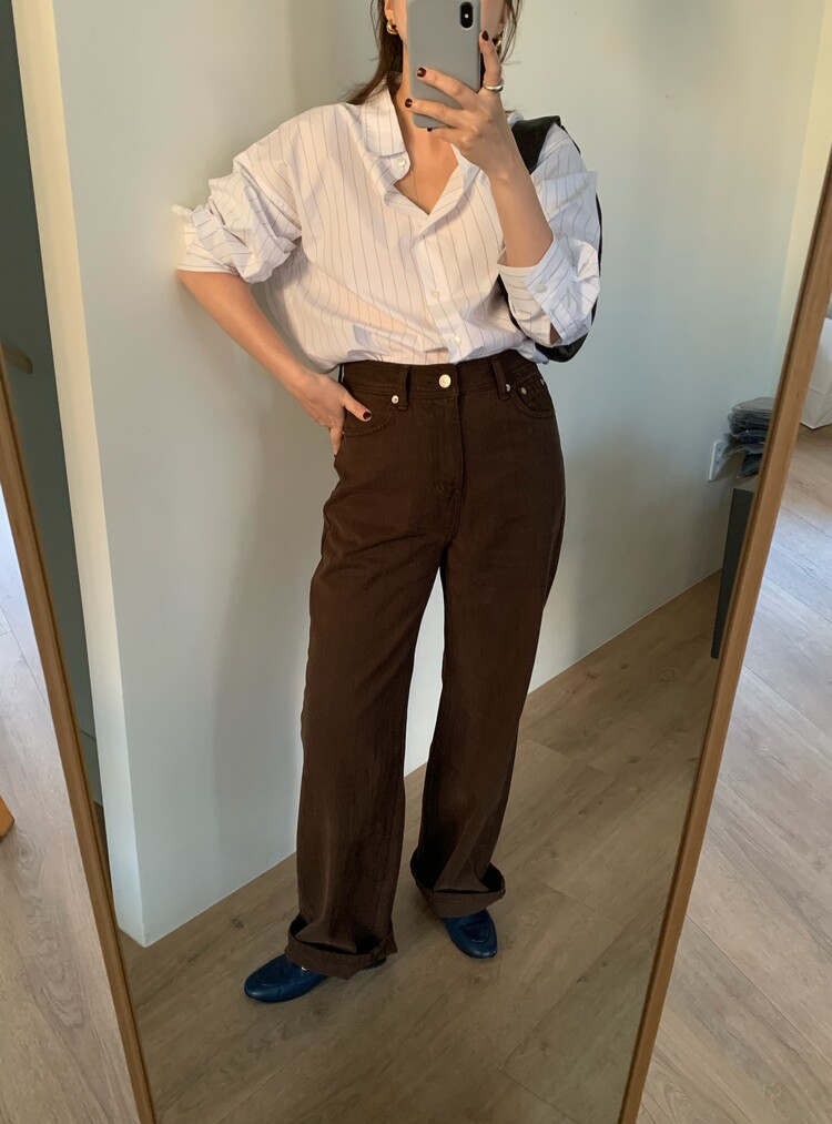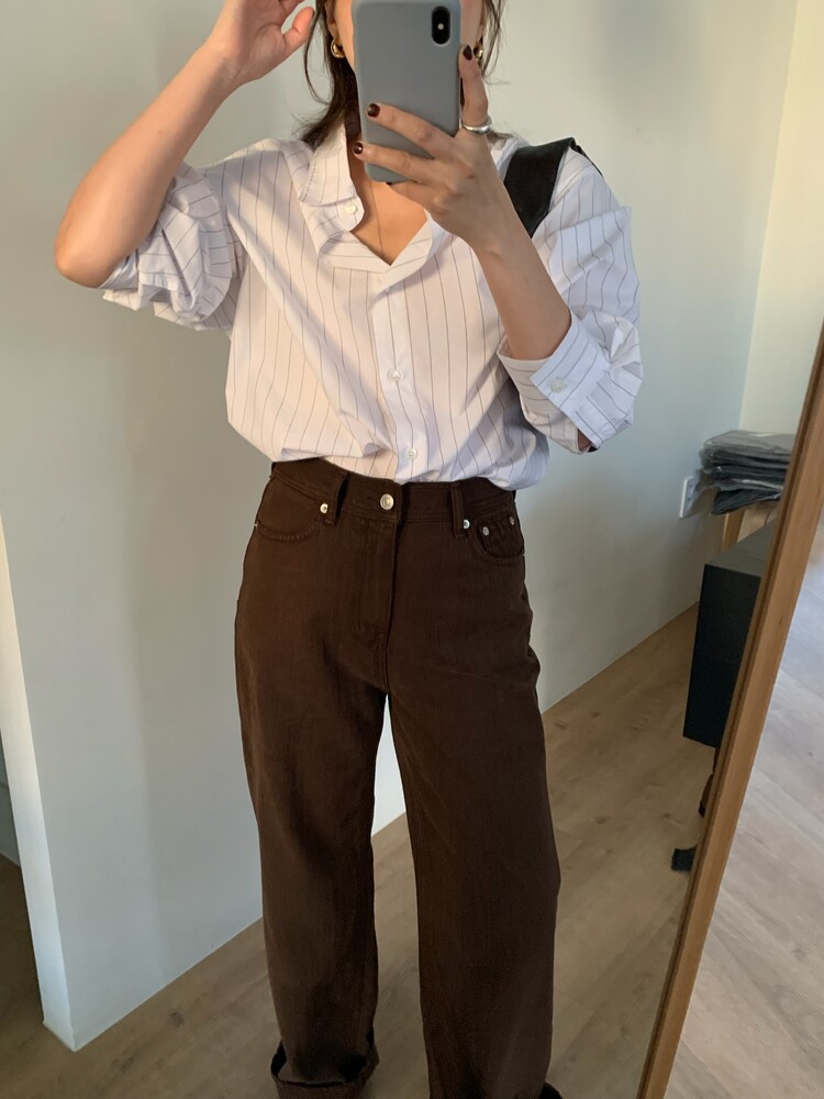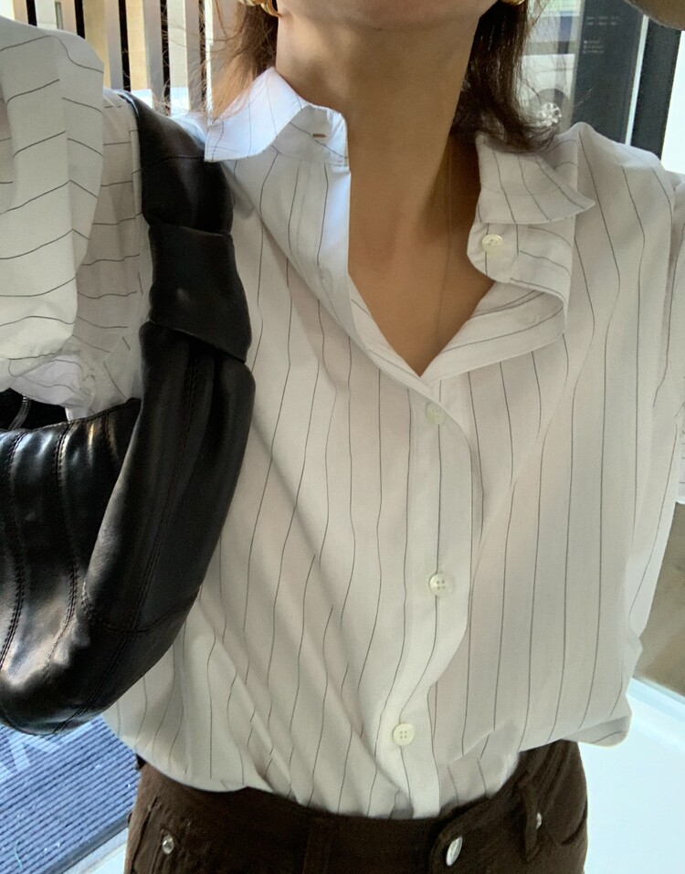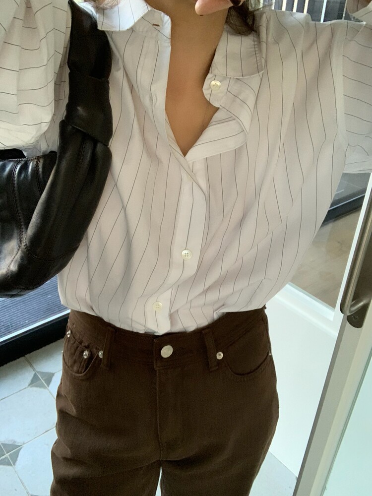 레귤러 카라와 버튼 여밈구조로 매니시한 무드로