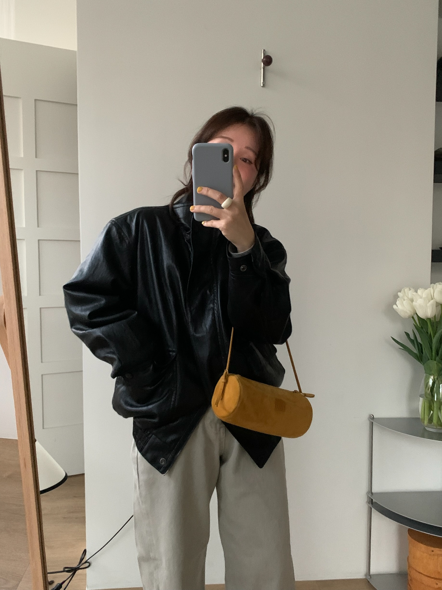 하이넥 카라가 멋스럽고 부드럽고 소프트한 가죽질감이