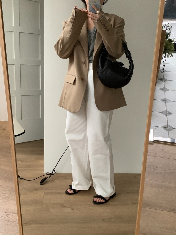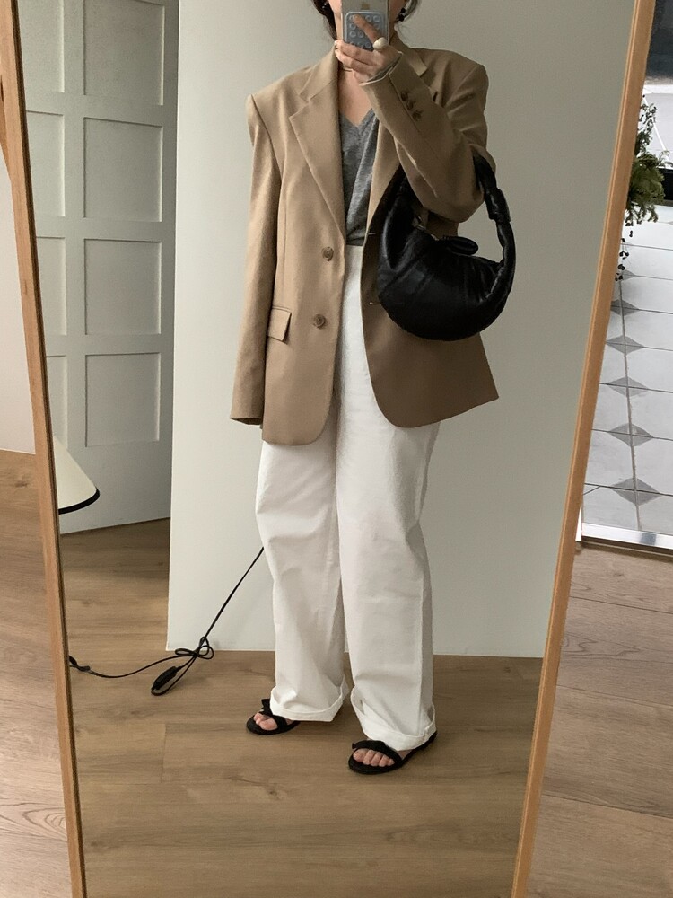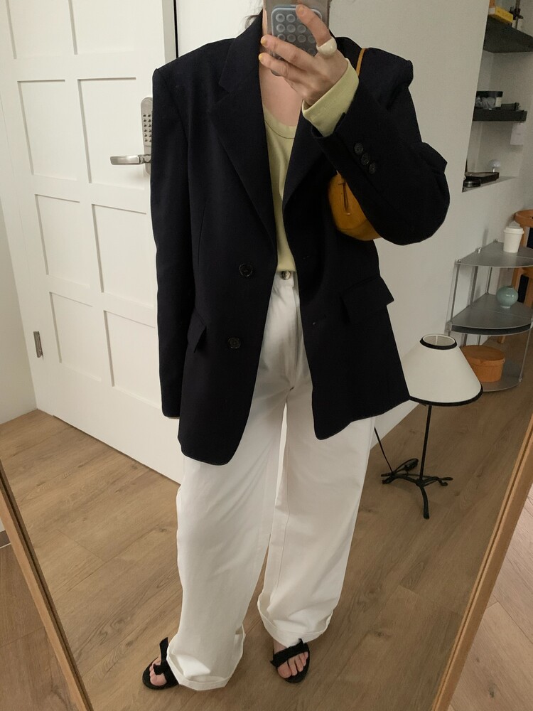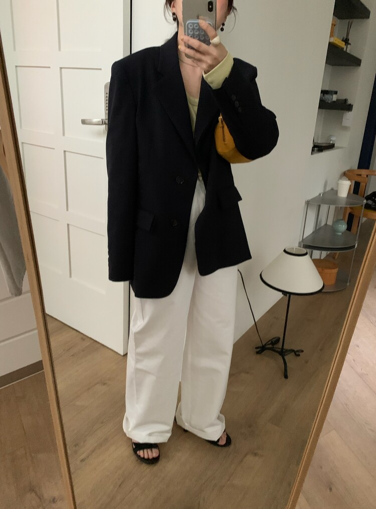 얇은 어깨 패드가 핏을 깔끔하게 잘 잡아줍니다