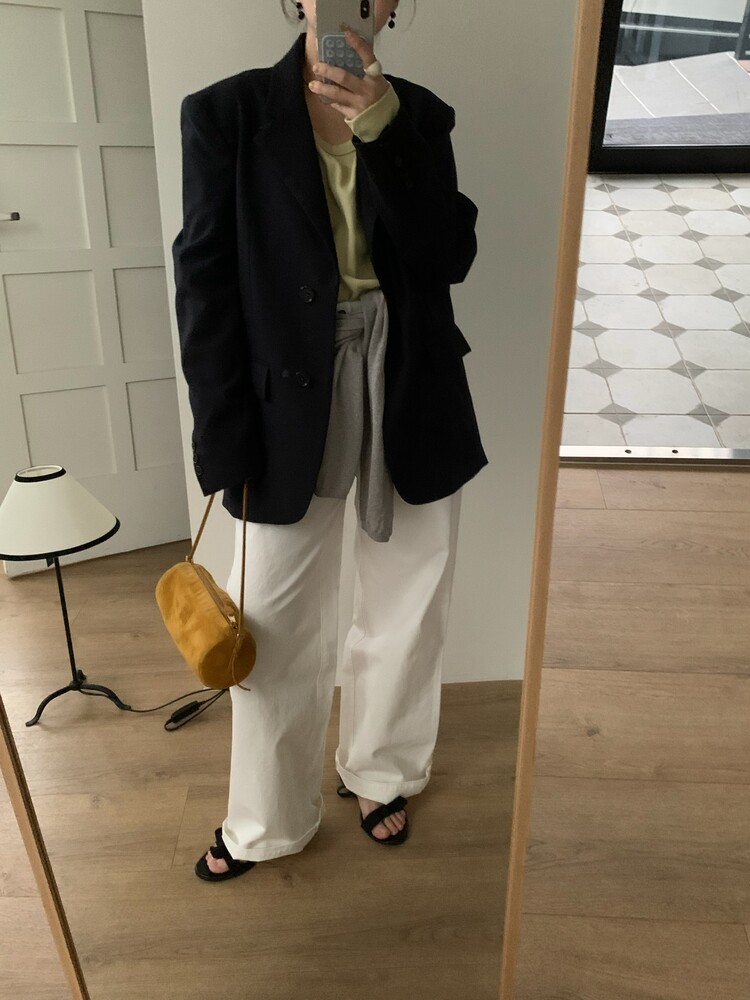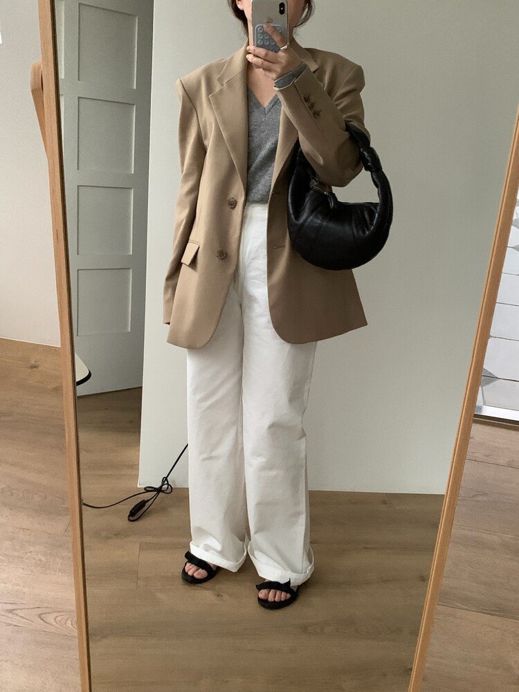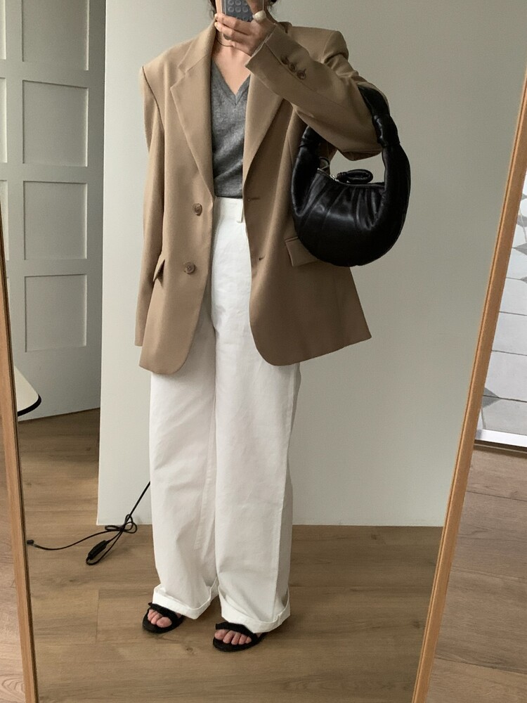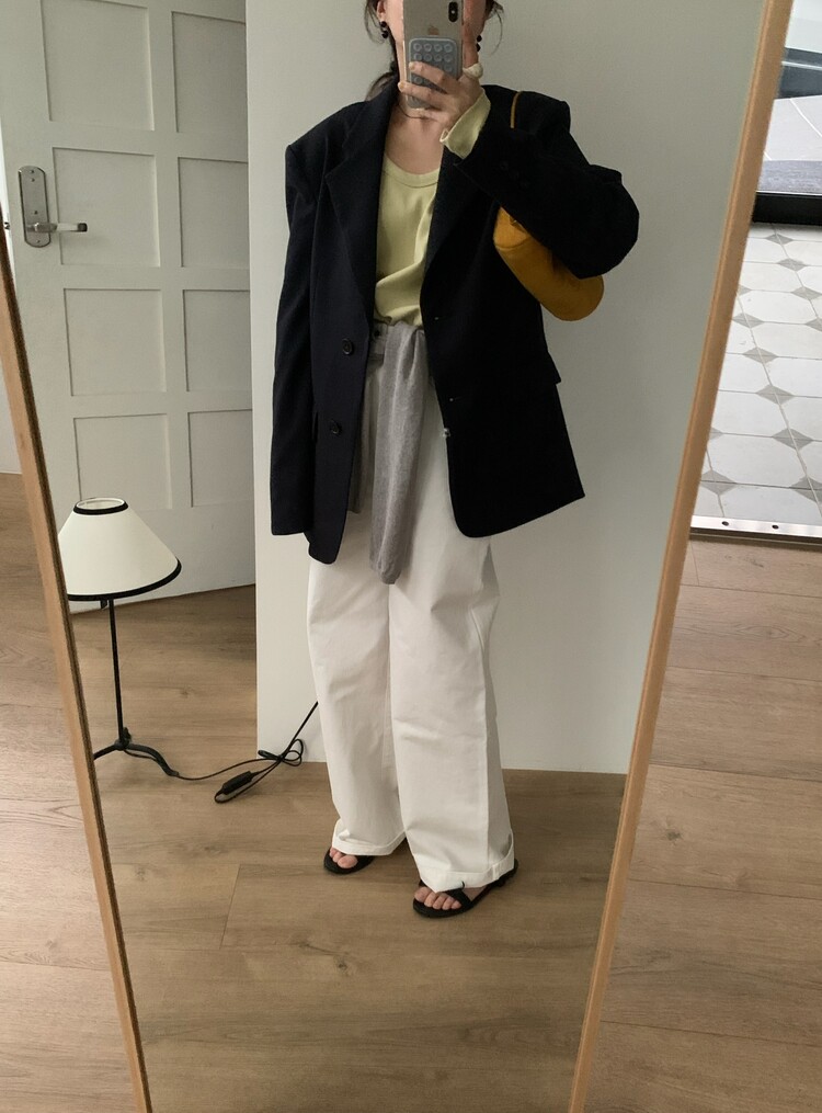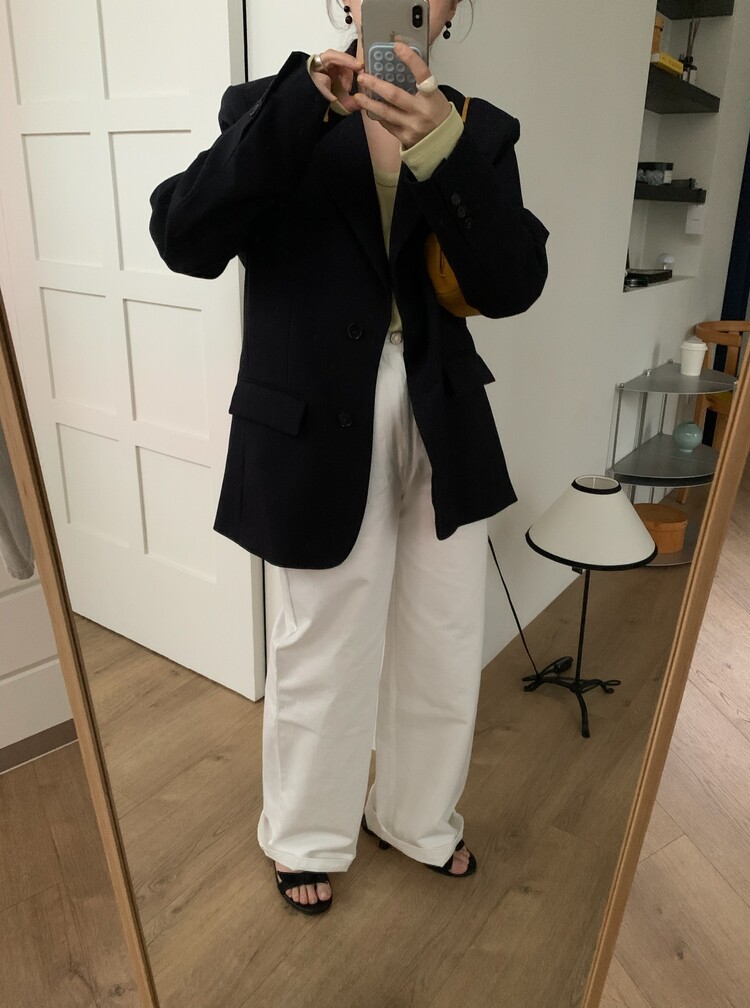얇은 어깨 패드가 핏을 깔끔하게 잘 잡아줍니다
