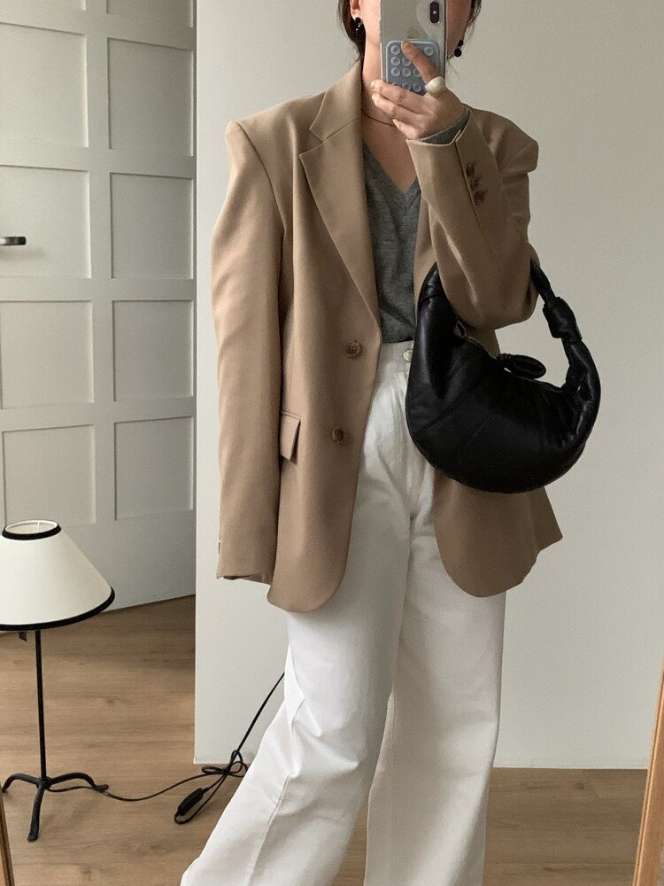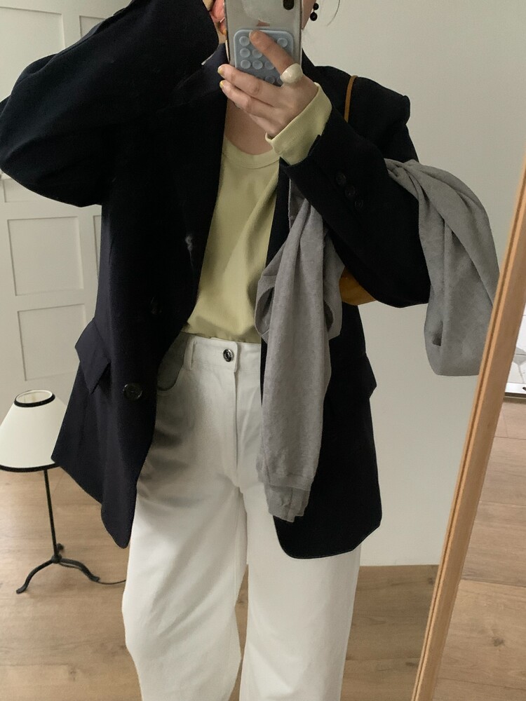 적당한 루즈핏의 여성스러운 무드가 느껴지는 자켓 입니다