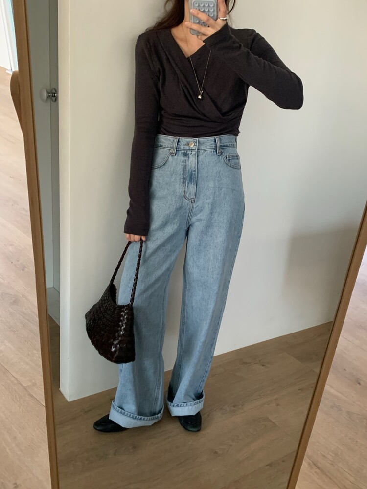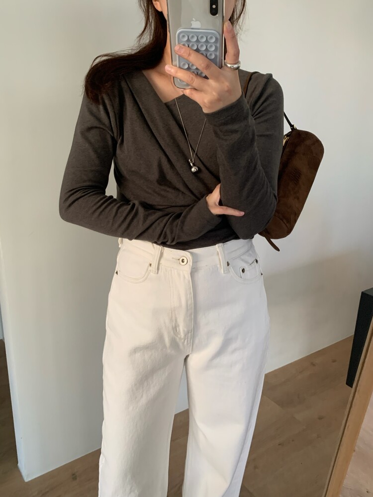 넥라인이 자연스럽게 흘러내리는 핏으로