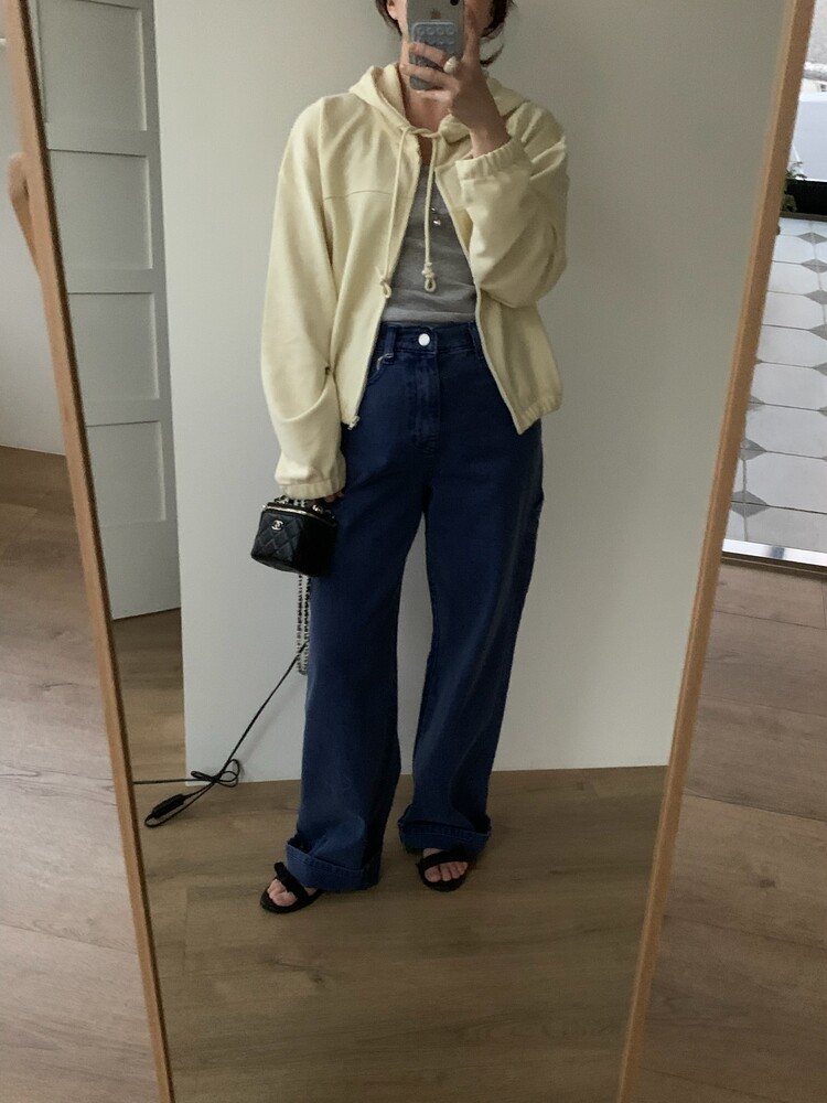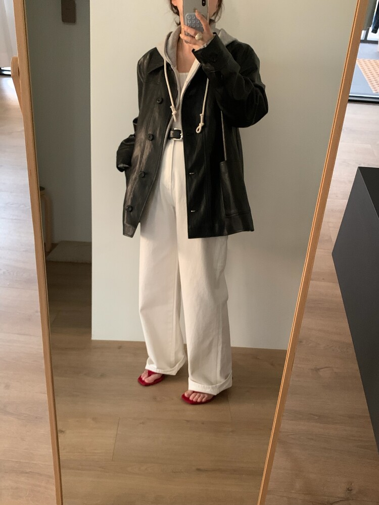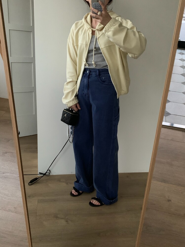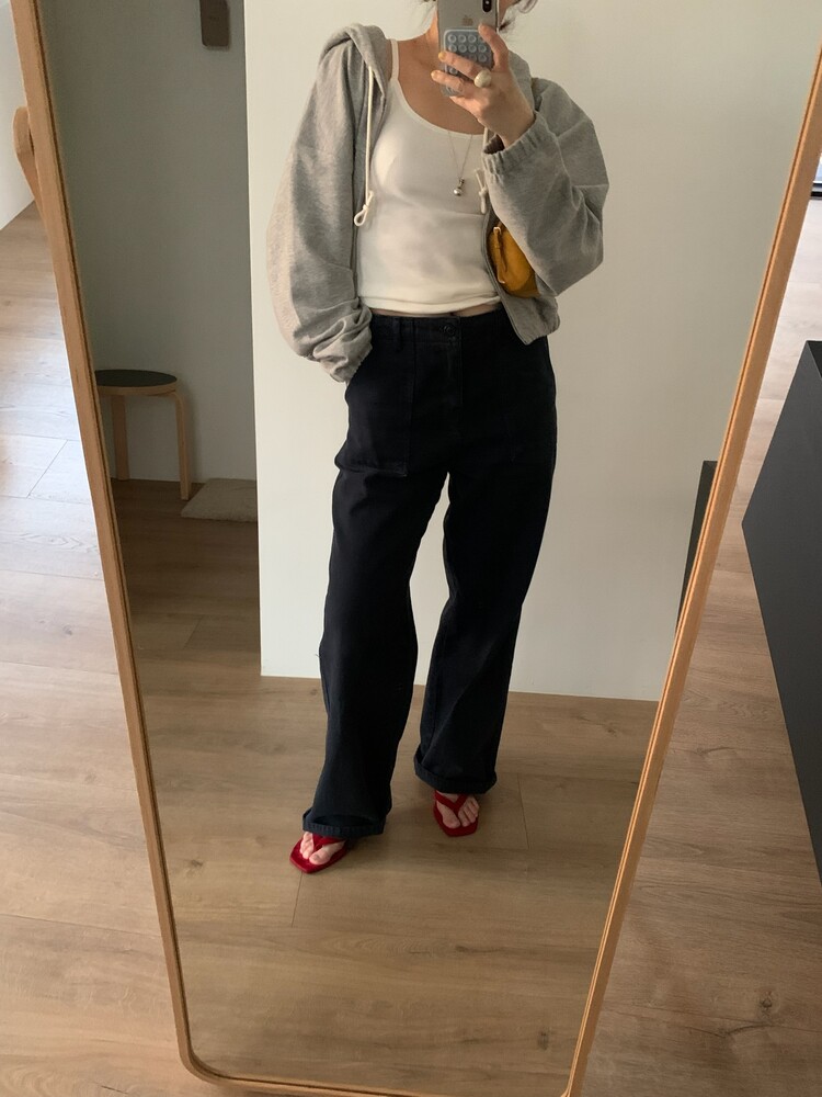 같이 코디한 팬츠는 카펜더 다잉팬츠 블루컬러입니다