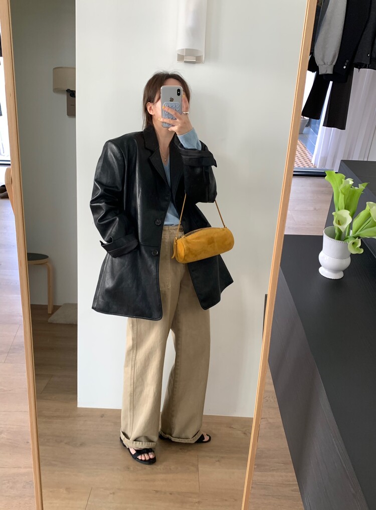 과하지 않고 핏을 예쁘게 잡아주는 적당한 어깨패드가 내장되어있으며