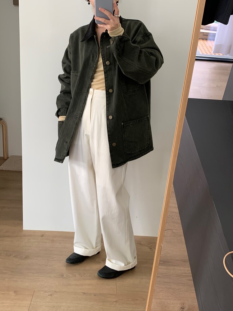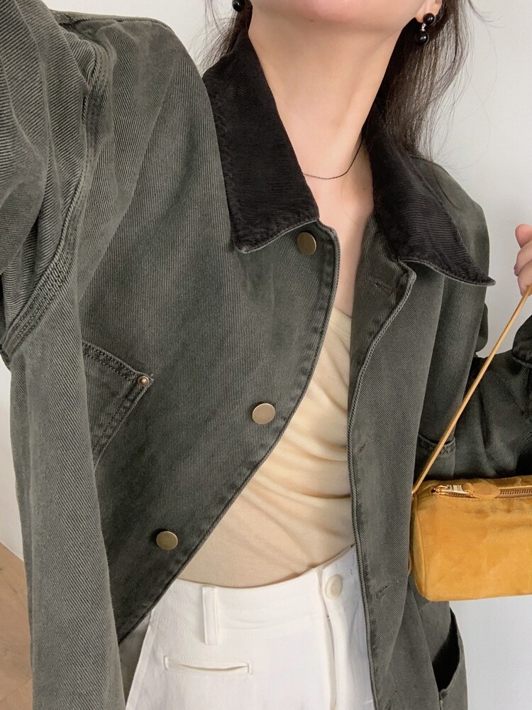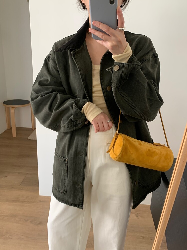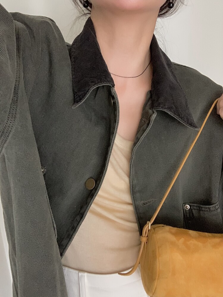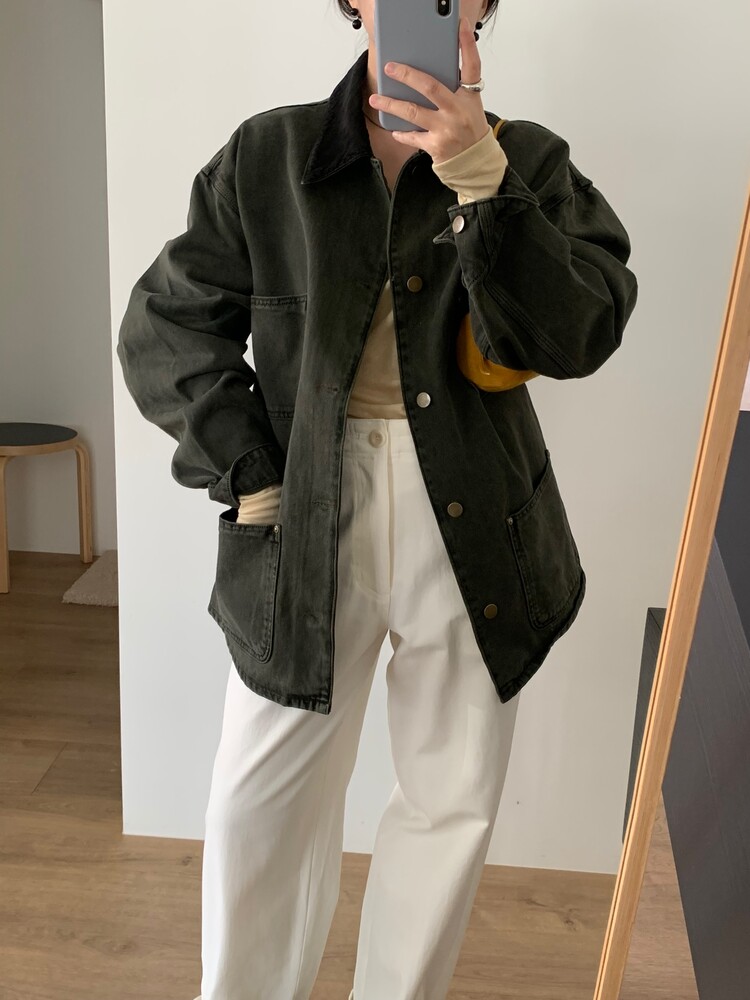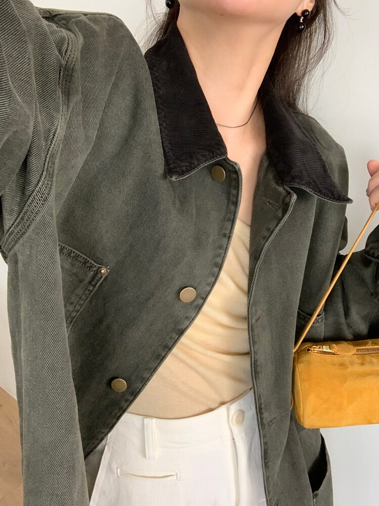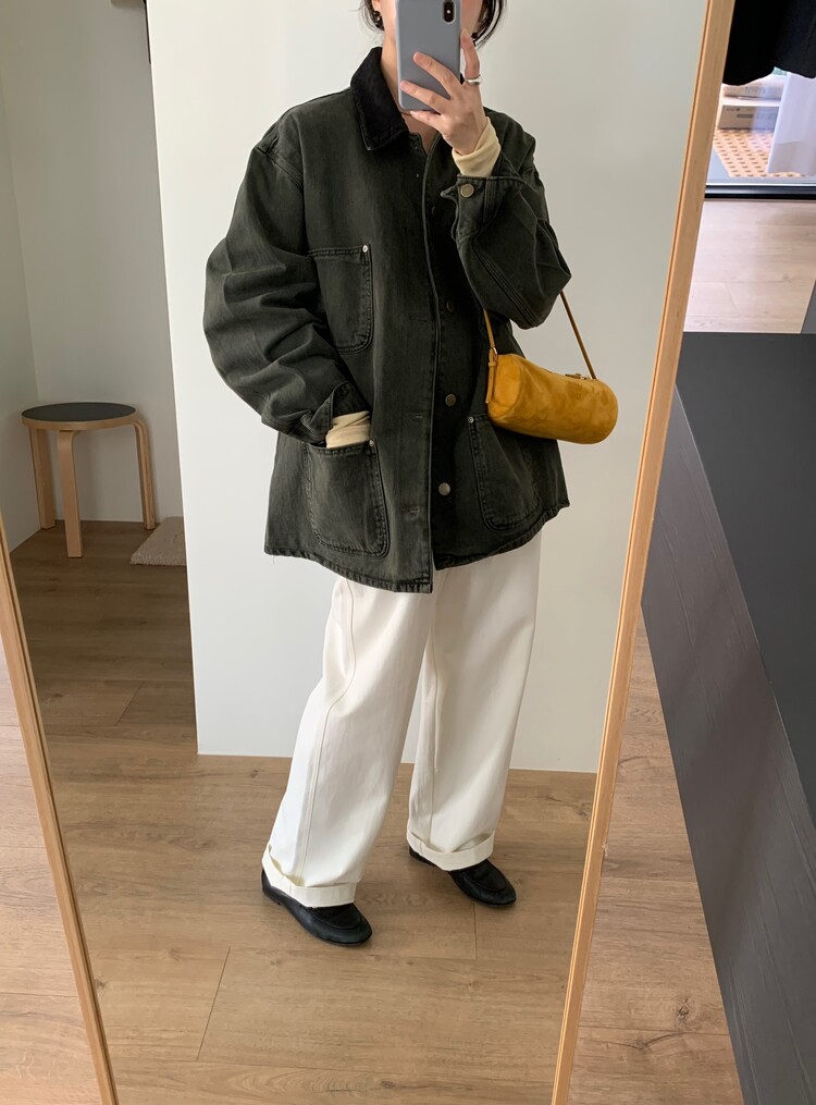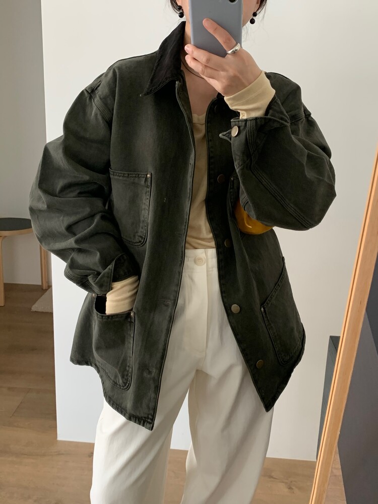적당한 두께감으로 가벼우며 카라부분은 코듀로이 소재로