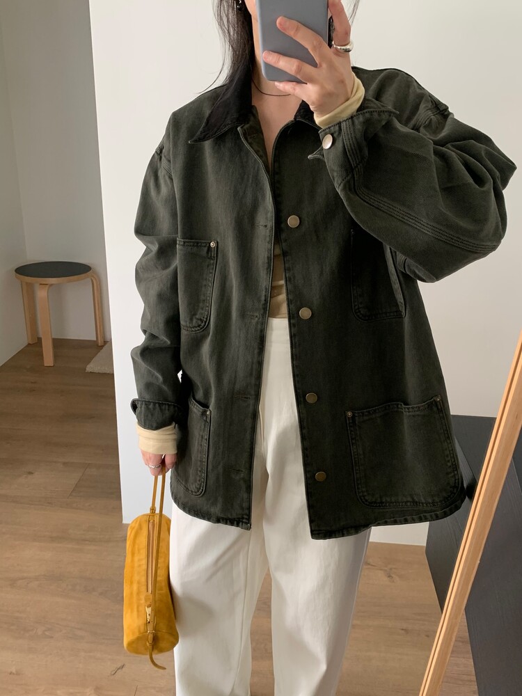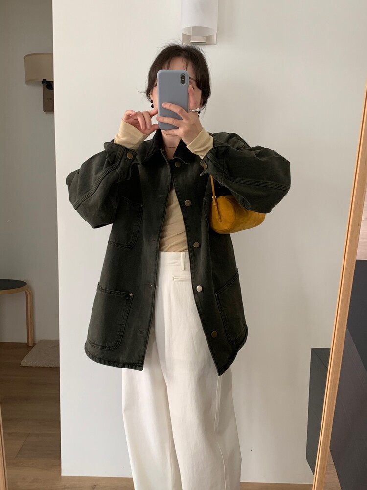 배색을 주었으며 단추 여밈구조로 오픈클로징이 가능합니다 사이즈는 여유로워 44-66반까지 추천드릴께요
