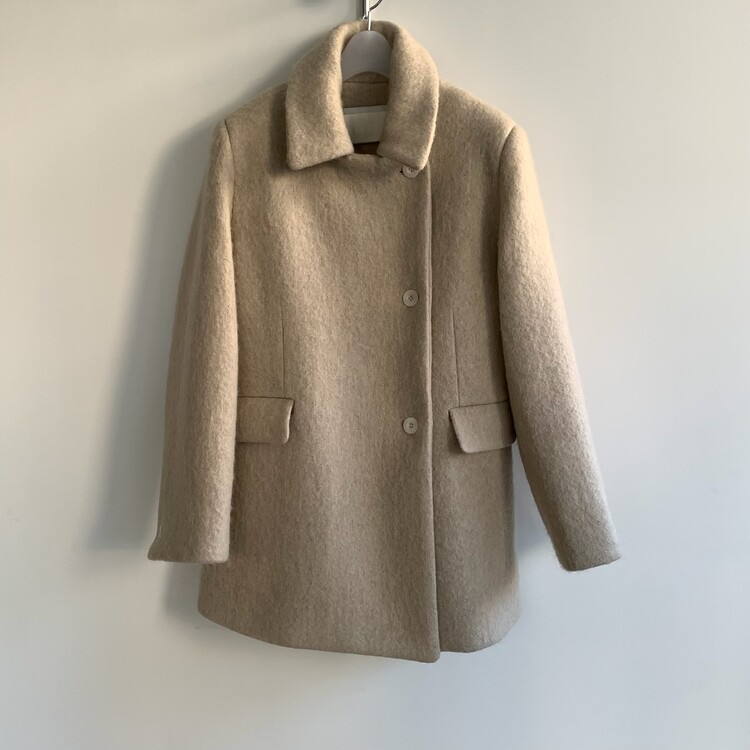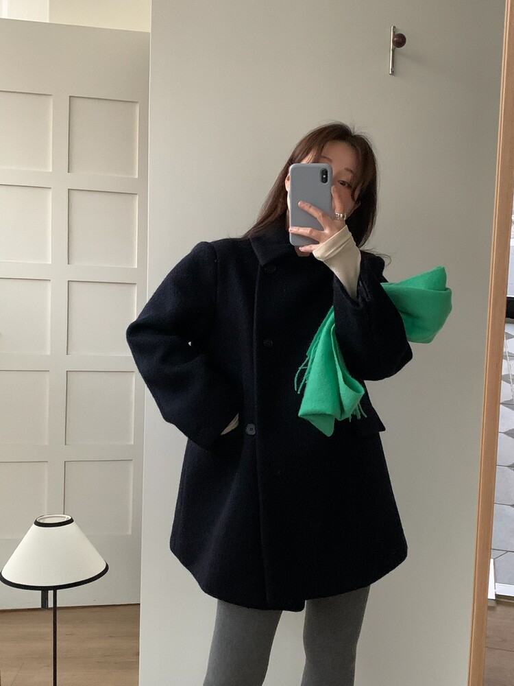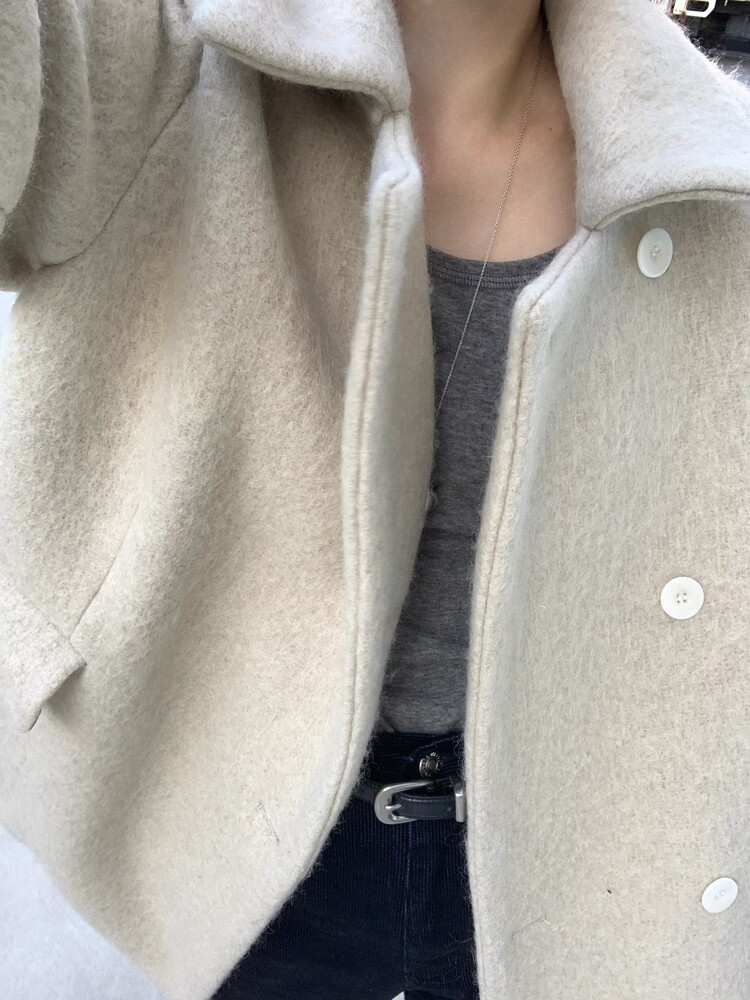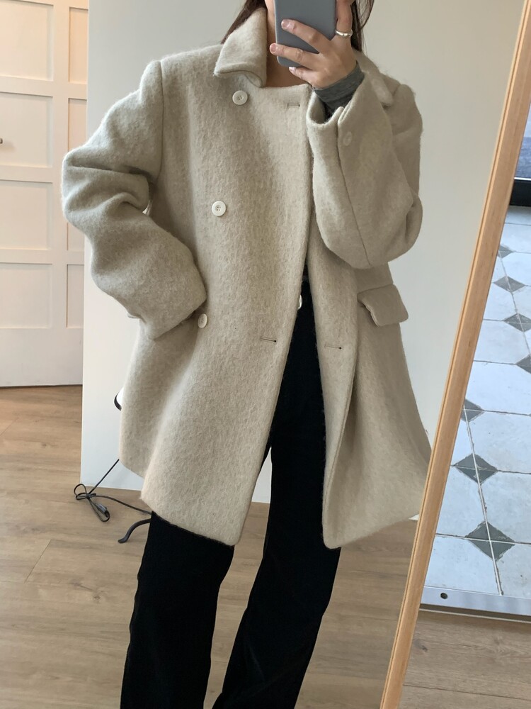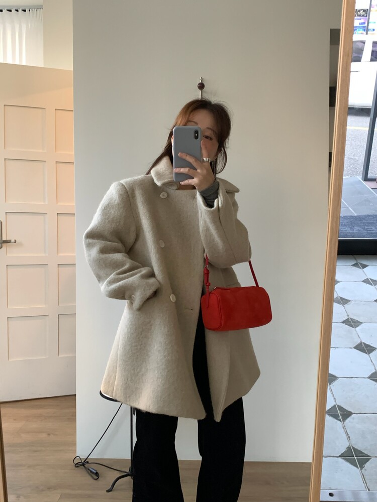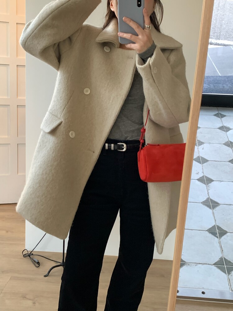 미니멀한 디자인에 울 블렌드의 헤어결이 고급스러움을