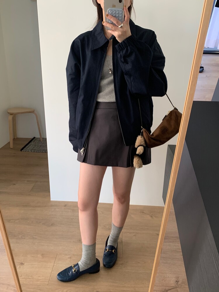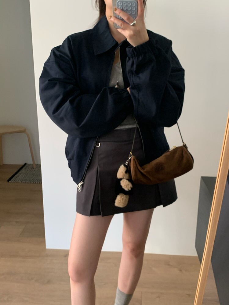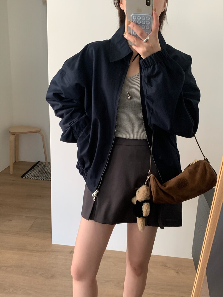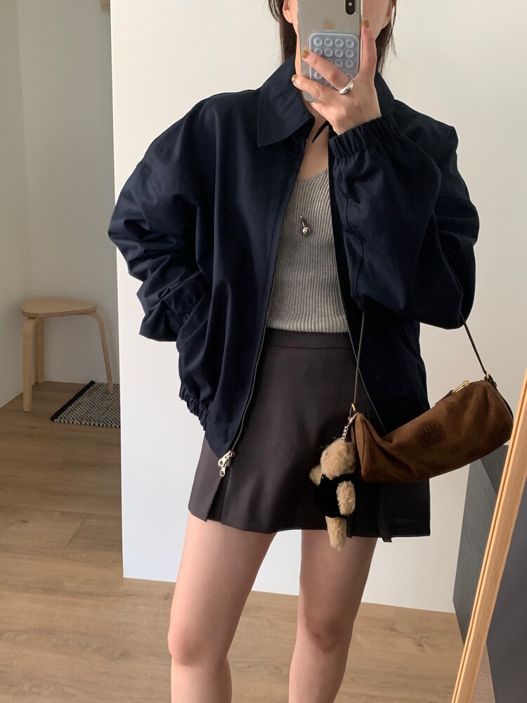 적당하게 루즈한 핏으로 연출되는 블루종입니다