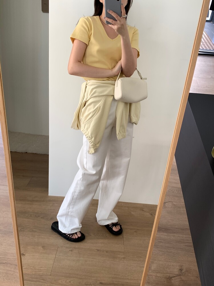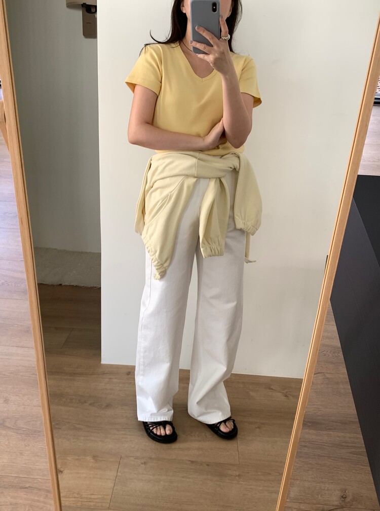 톡톡한 코튼 원단에 브이넥라인으로 기본티셔츠이지만