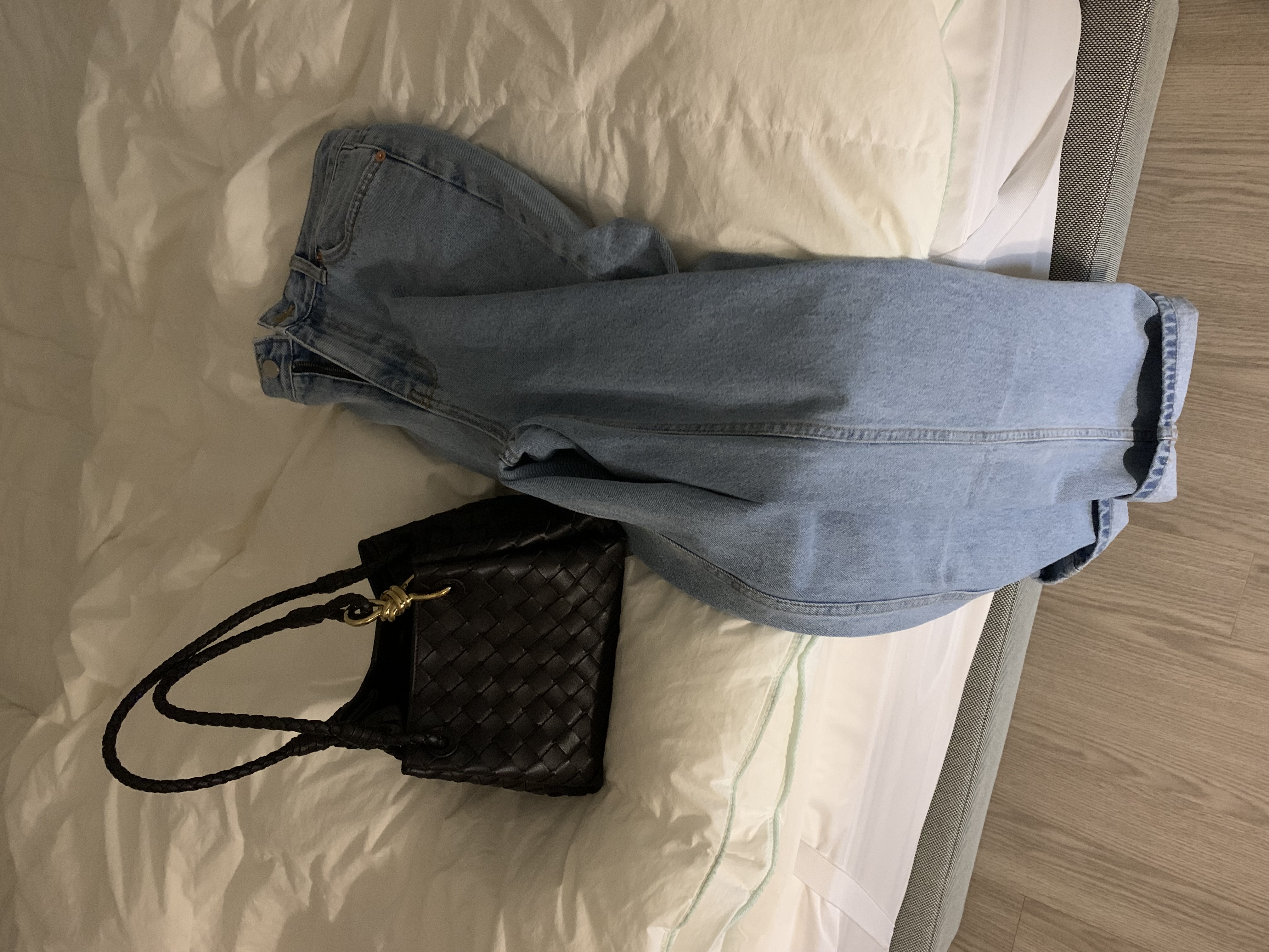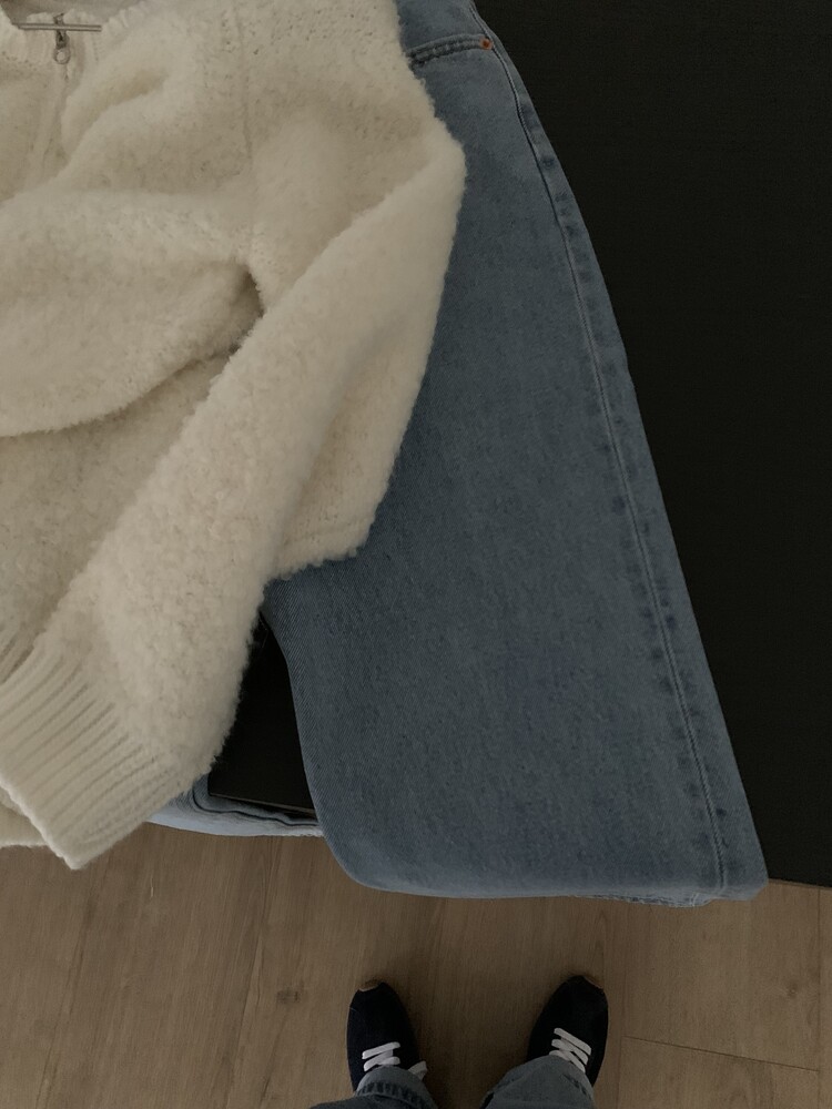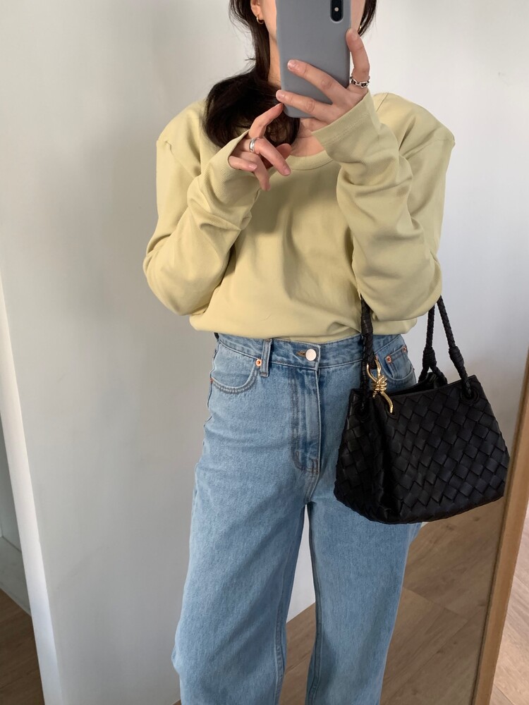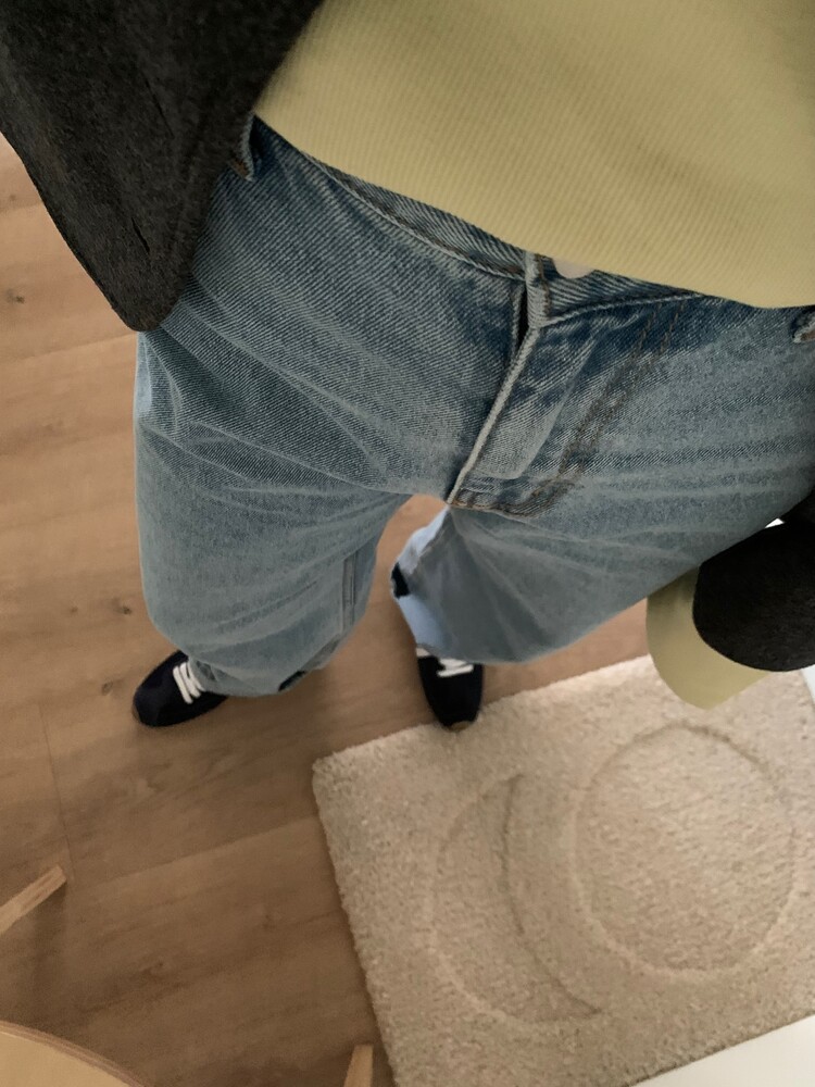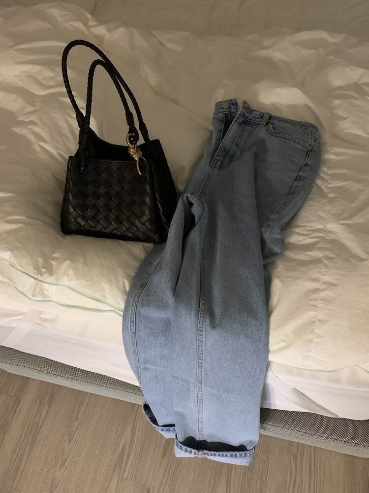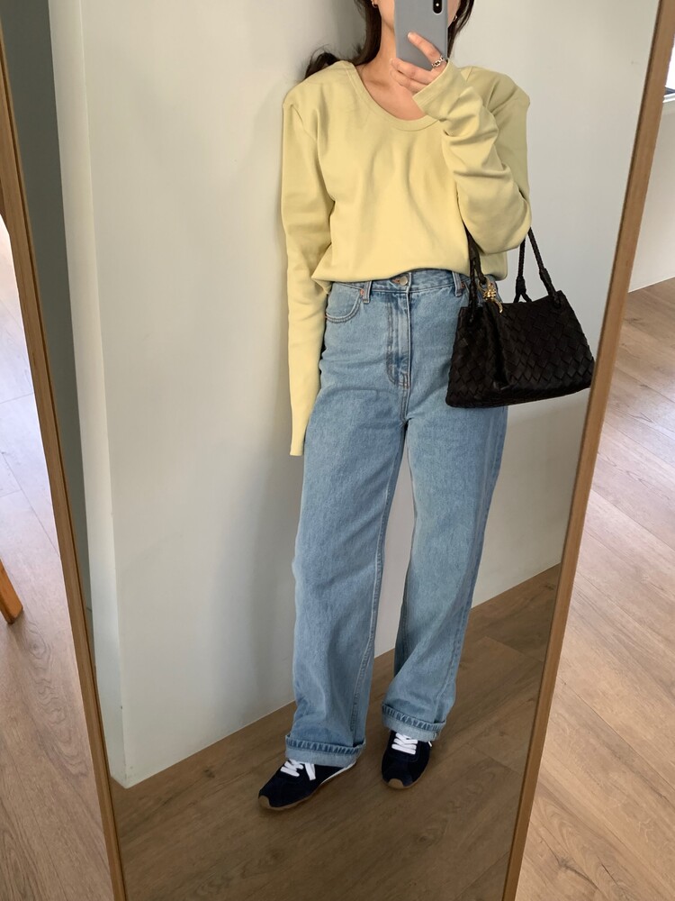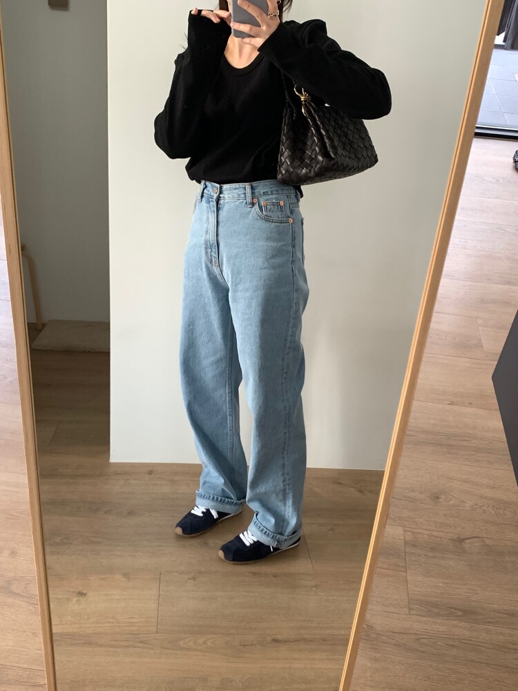 일자로 떨어지는 핏의 연청 데님 팬츠입니다