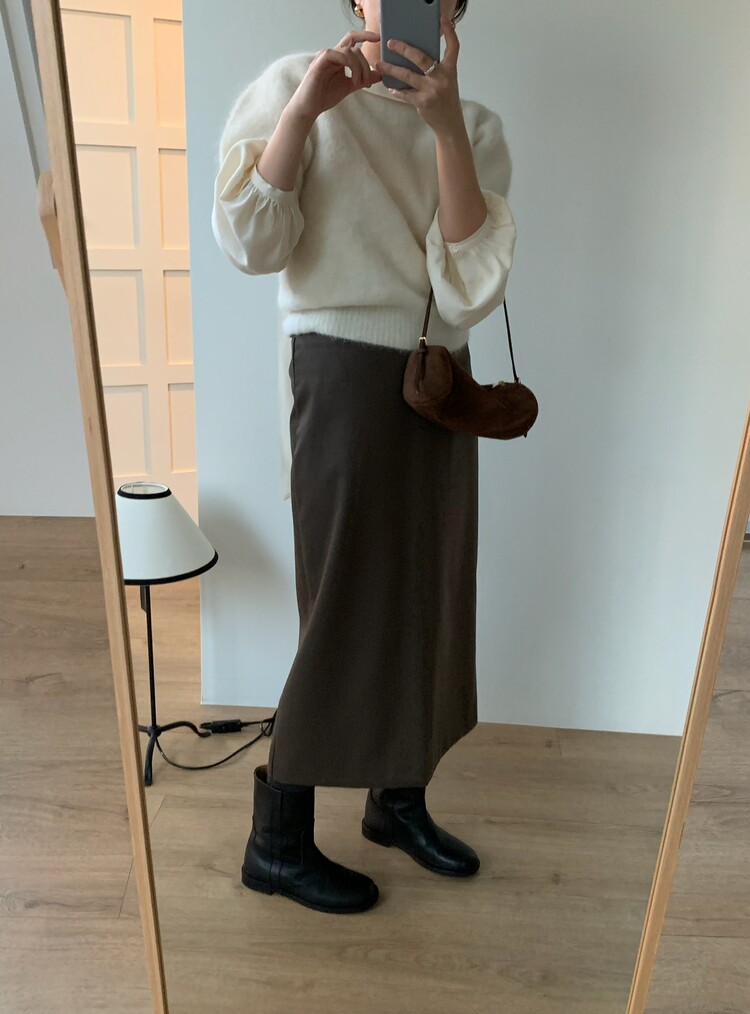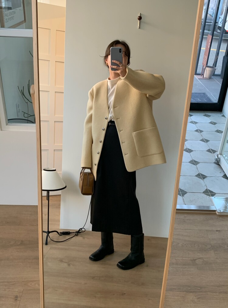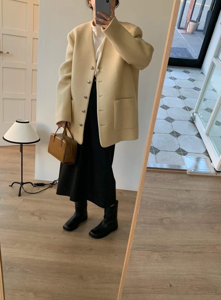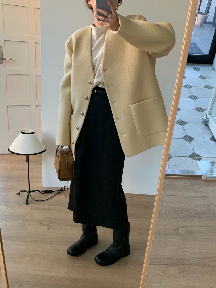 에이치 라인의 울 100 소재로 약간의 탄탄함이 있는