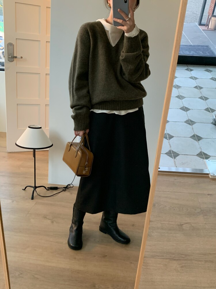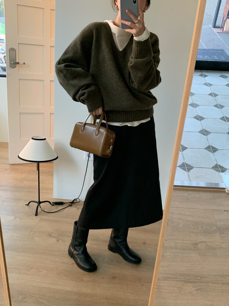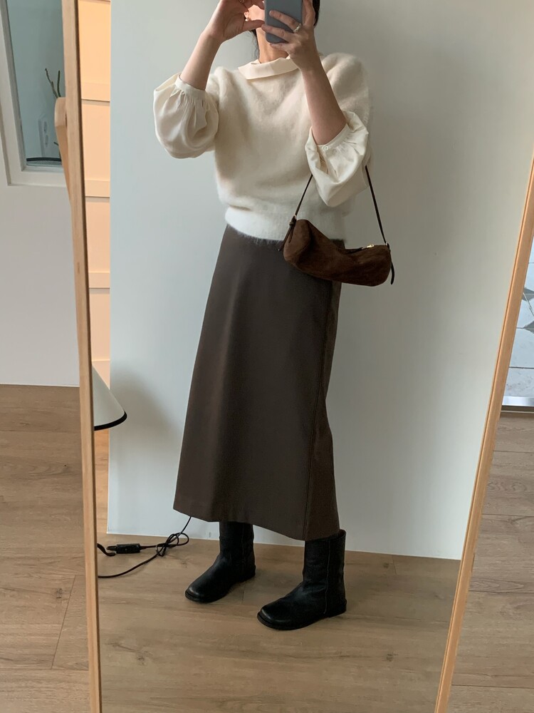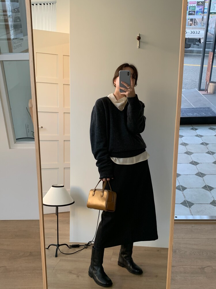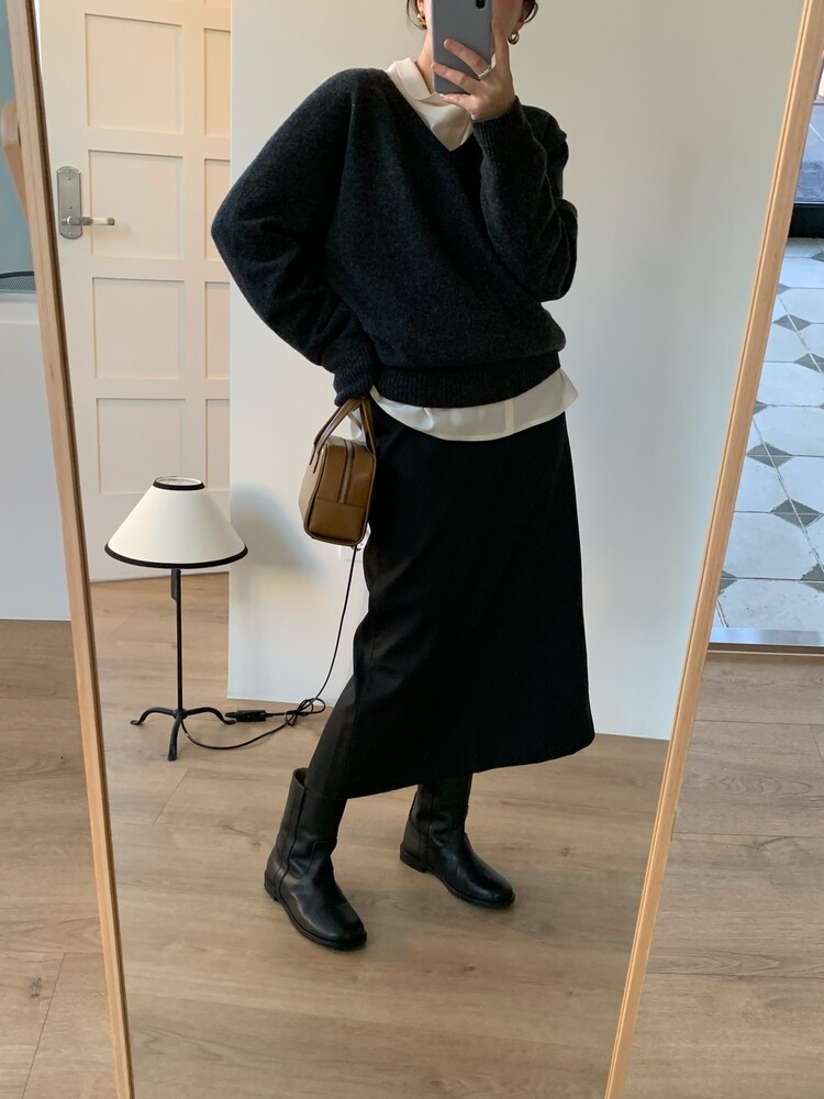 에이치 라인의 울 100 소재로 약간의 탄탄함이 있는