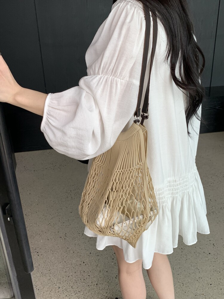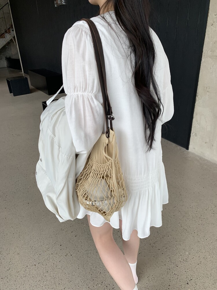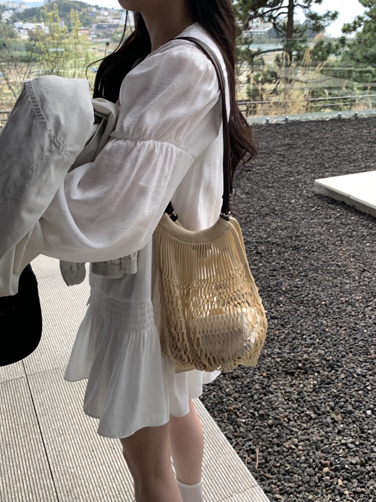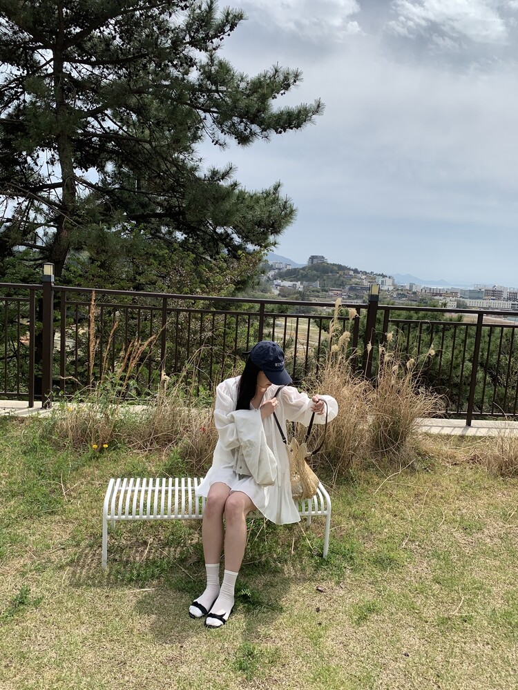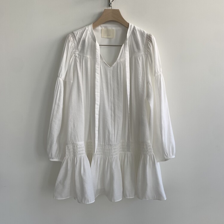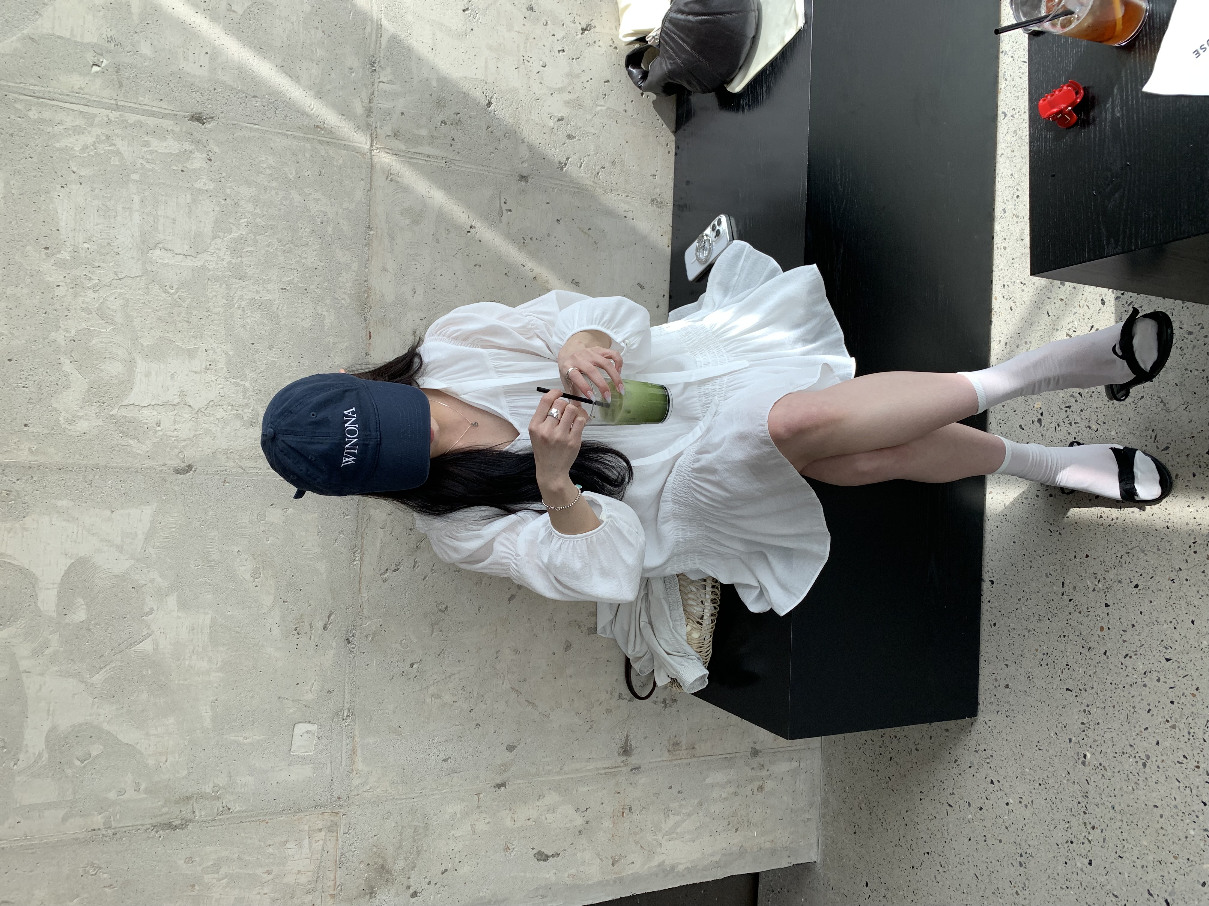 여유있는 핏으로 편하게 착용되는 미니 기장의 원피스입니다